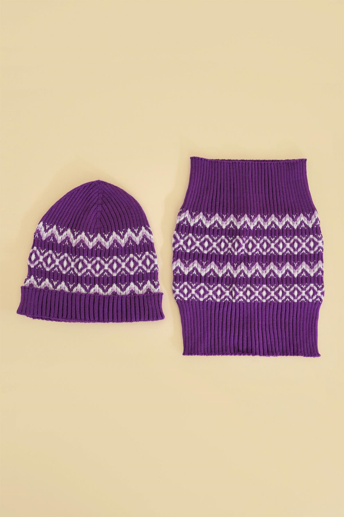 Chuba Çocuk Desenli Boyunluk Atkı Ve Bere Takımı Mor CHKIDS102