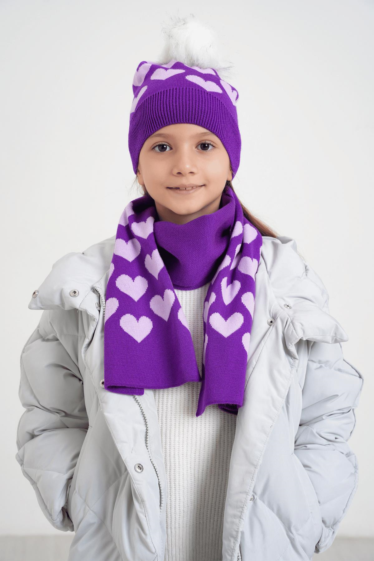 Chuba Çocuk Kalp Desenli Ponponlu Atkı Bere Takımı 7-9 & 10-12 Yaş Mor CHKIDS105