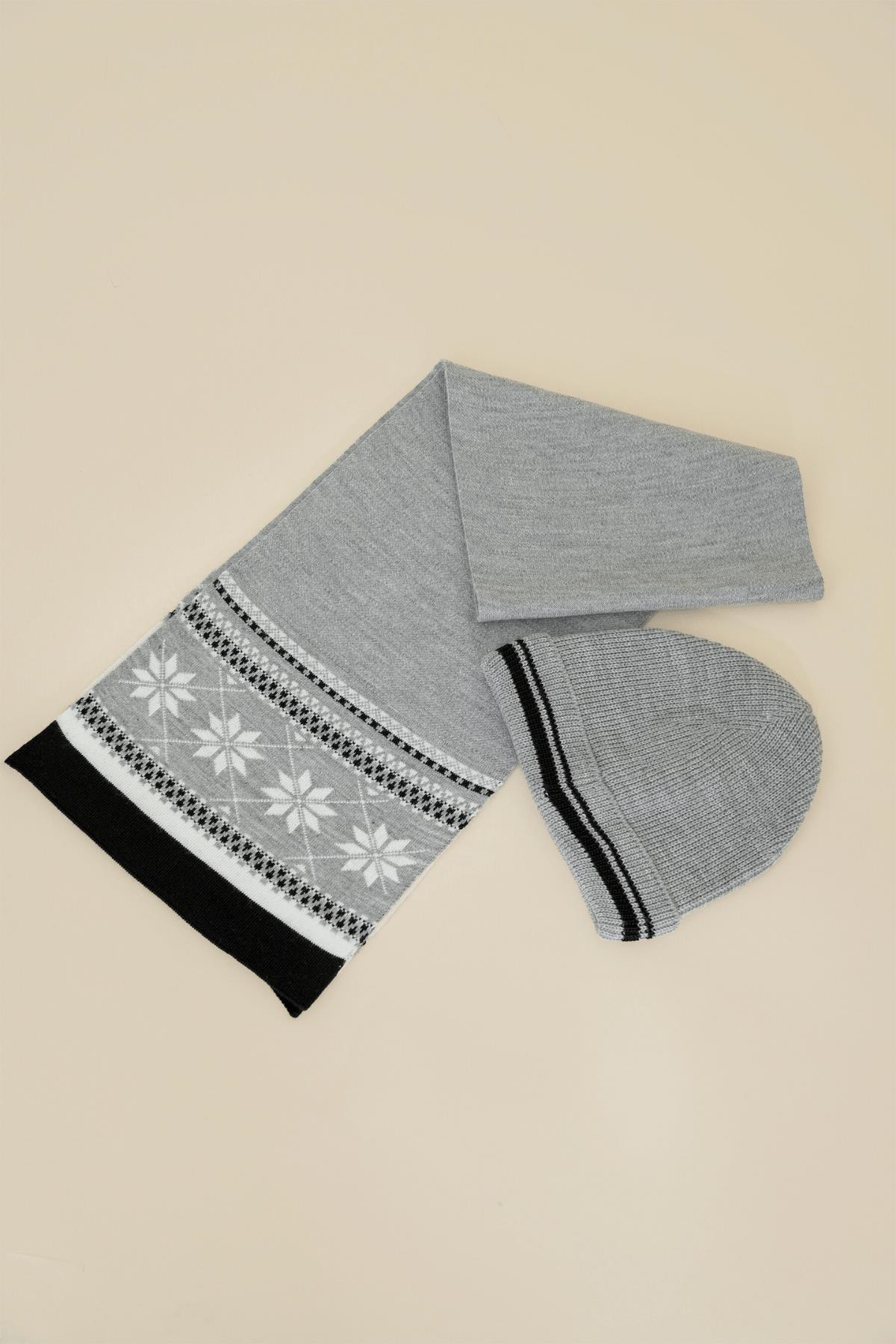 Chuba Çocuk Kar Desenli Triko Atkı Bere Takımı 7-9 & 10-12 Yaş Gri CHKIDS104