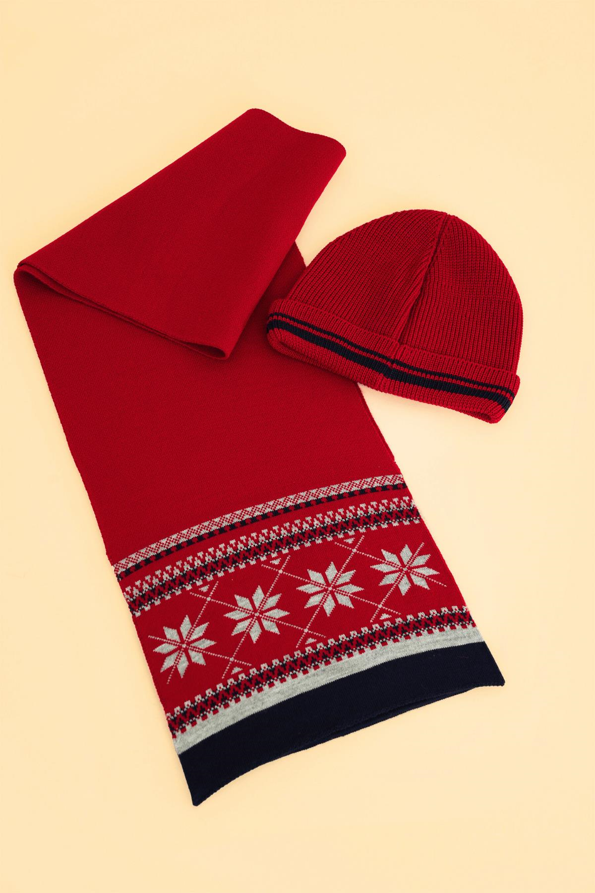 Chuba Çocuk Kar Desenli Triko Atkı Bere Takımı 7-9 & 10-12 Yaş Kırmızı CHKIDS104