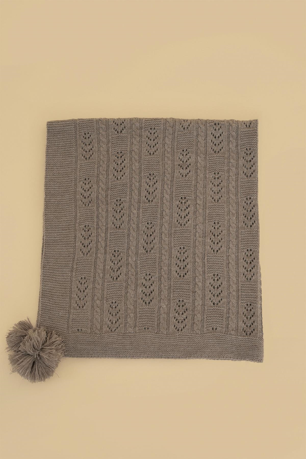 Chuba Çocuk Örgü Desenli Ponponlu Triko Battaniye (80cmx100cm) Vizon CHKIDS201