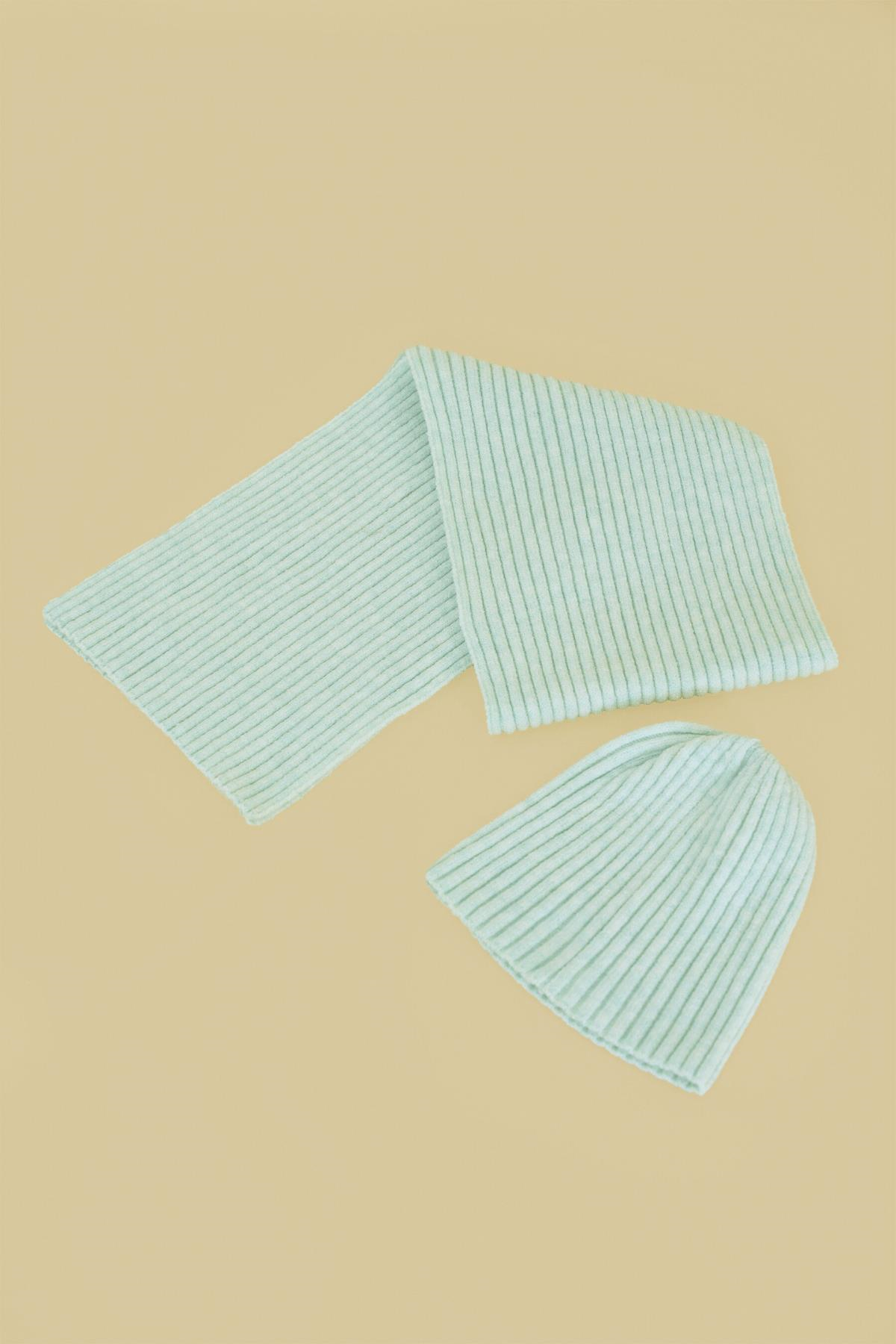 Chuba Çocuk Yumuşak Tuşeli Fitilli Atkı Bere Takımı 3-6 Yaş Mint CHKIDS101