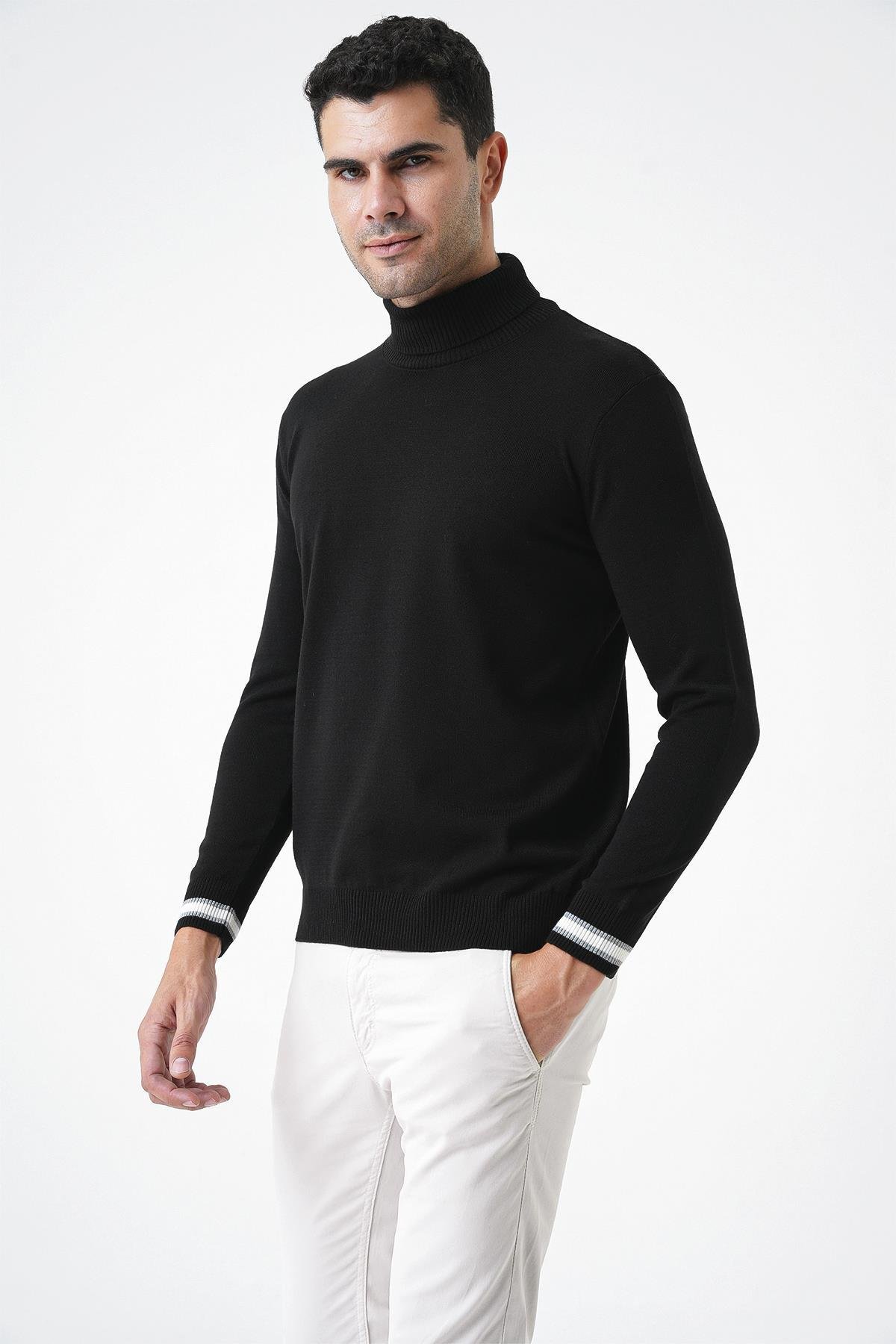 Chuba Erkek Siyah Balıkçı Yaka İnce Triko Kazak 20W154