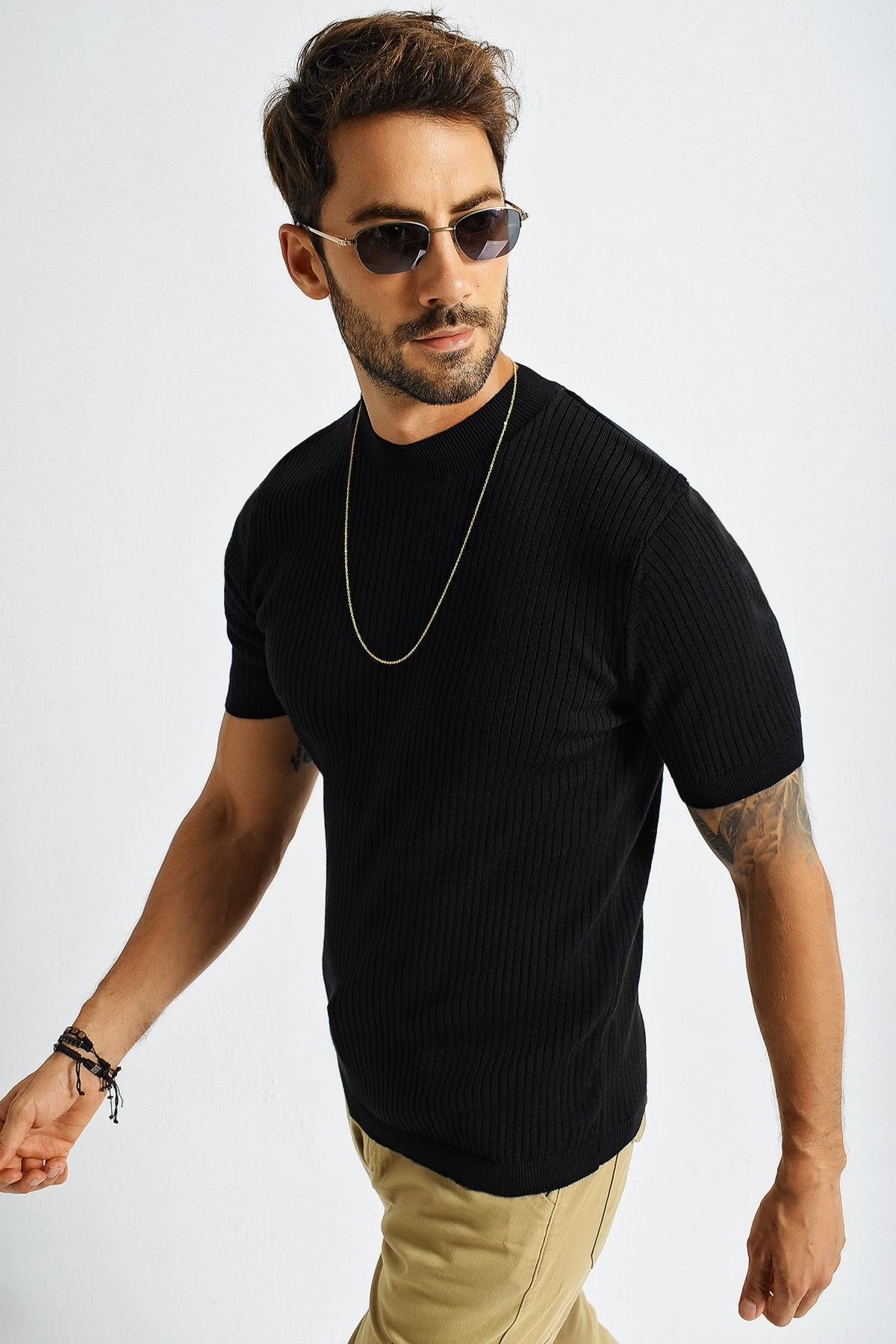 Chuba Erkek Bisiklet Yaka Fitilli Kısa Kollu İnce Triko Kazak 21W301