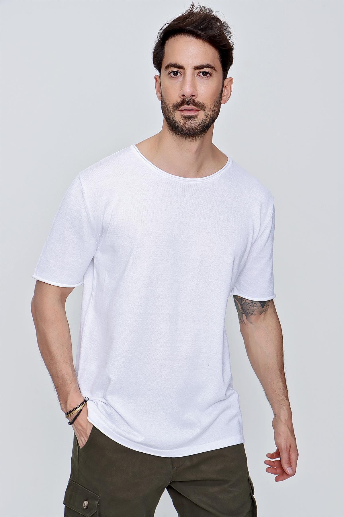 Chuba Erkek Bisiklet Yaka Geniş Kalıp Pamuklu İnce Triko T-Shirt Beyaz 22SM210