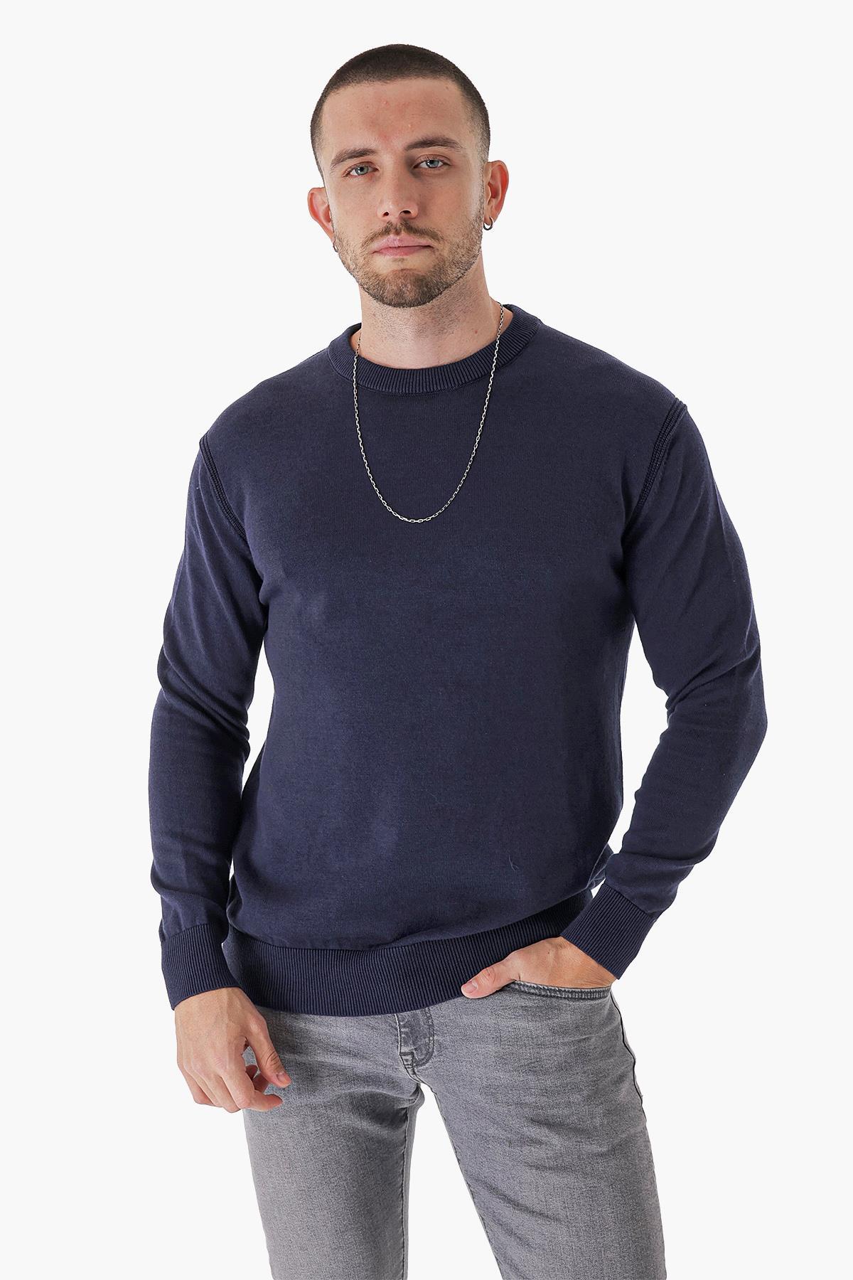 Chuba Erkek Bisiklet Yaka Pamuk ve Yün Karışımlı Standart Fit Kazak Lacivert 23W241