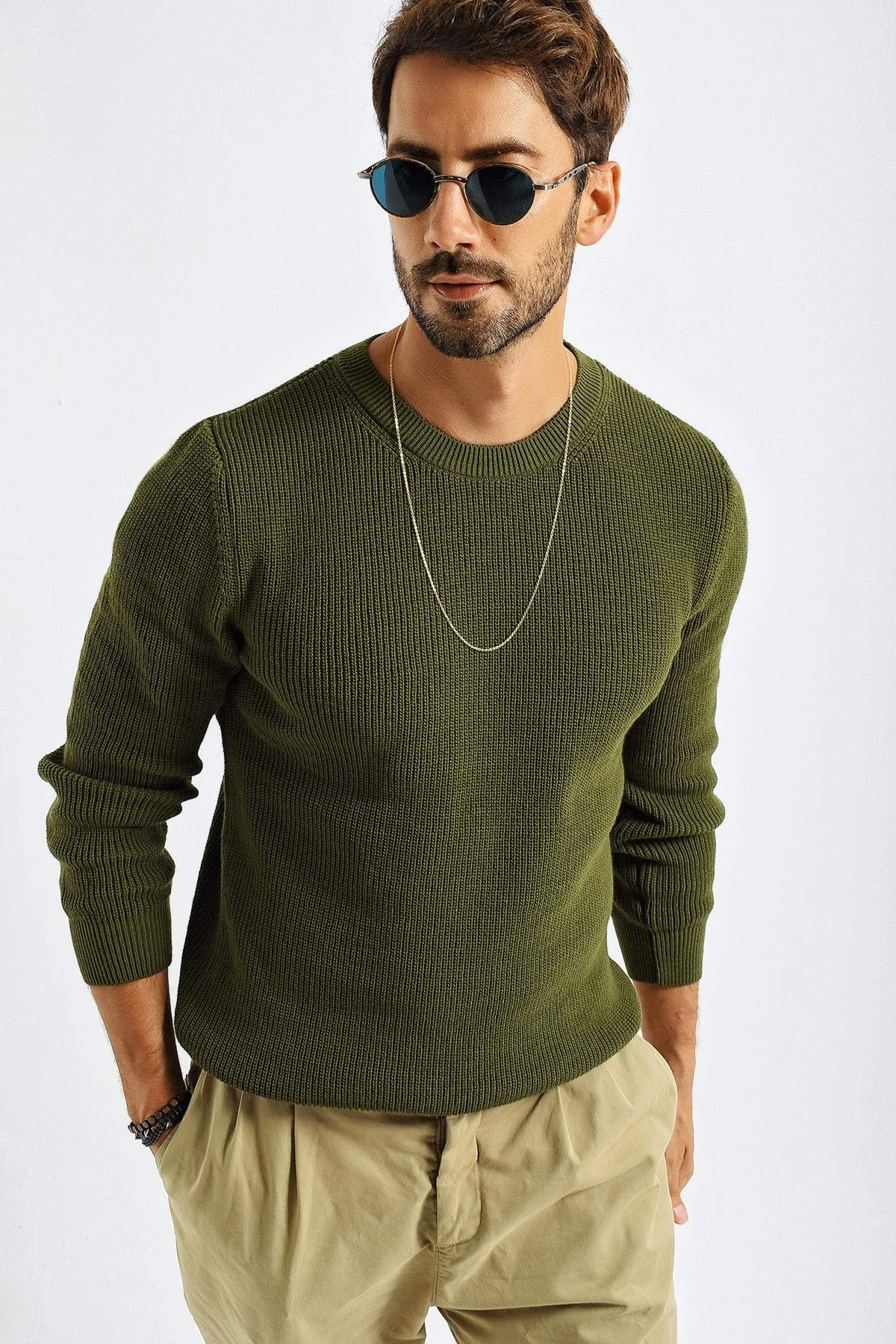 Chuba Erkek Bisiklet Yaka Selanik Örgü Triko Kazak Haki 21W303