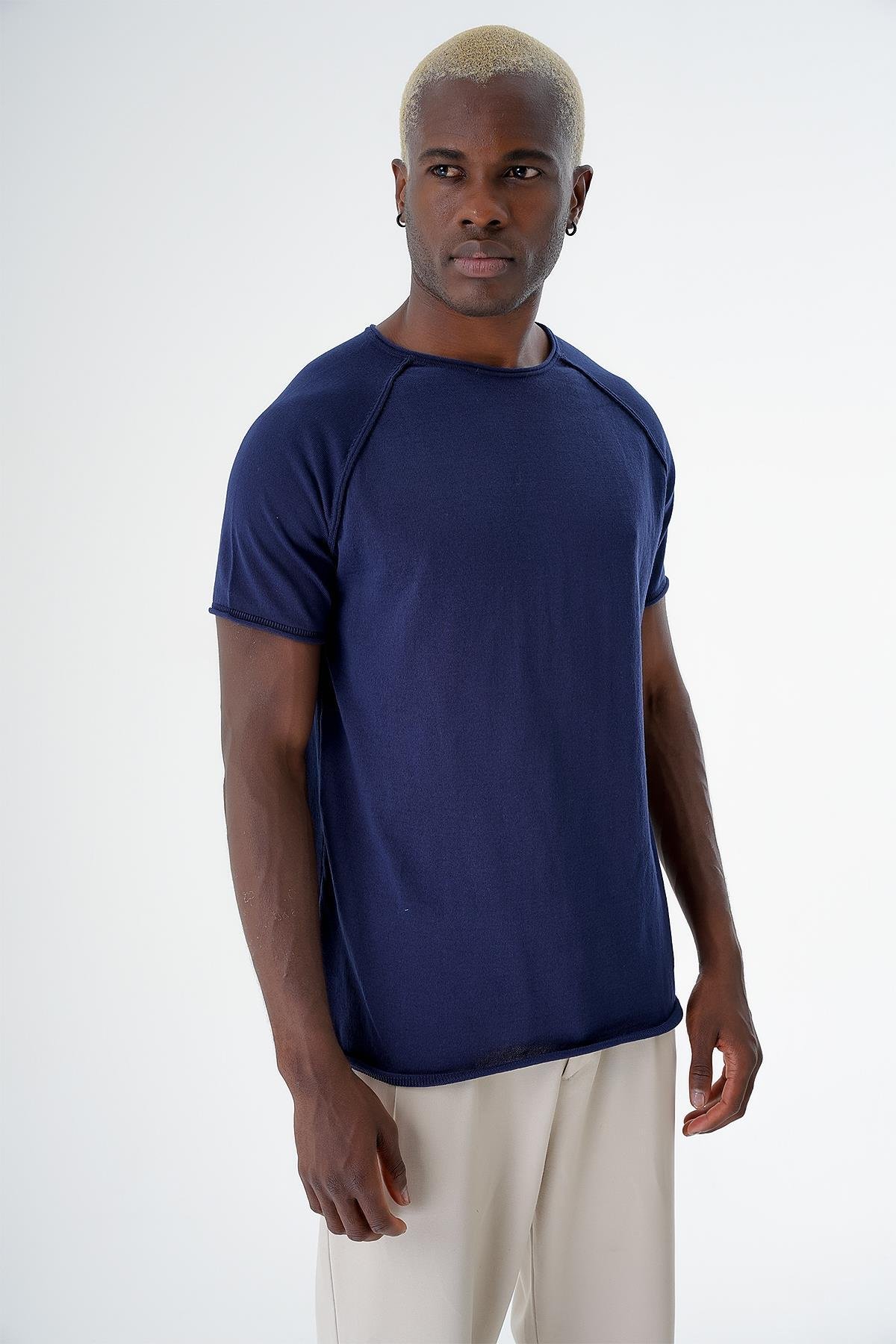 Chuba Erkek Bisiklet Yaka Spor Kesim Kısa Kollu İnce Triko T-Shirt Lacivert 24S268
