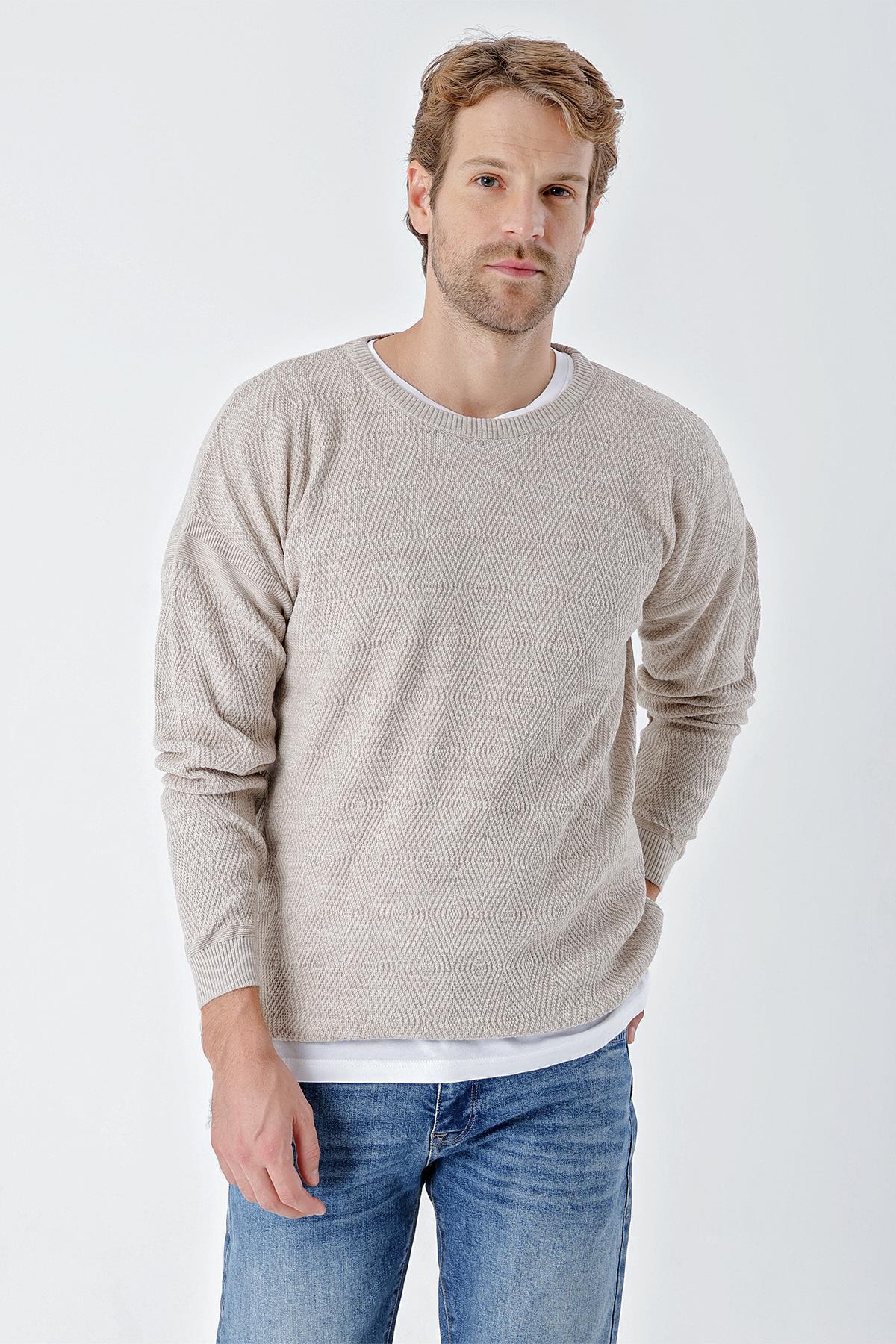 Chuba Erkek Bisiklet Yaka Standart Fit Normal Kalıp Spor Triko Kazak Bej 24W215