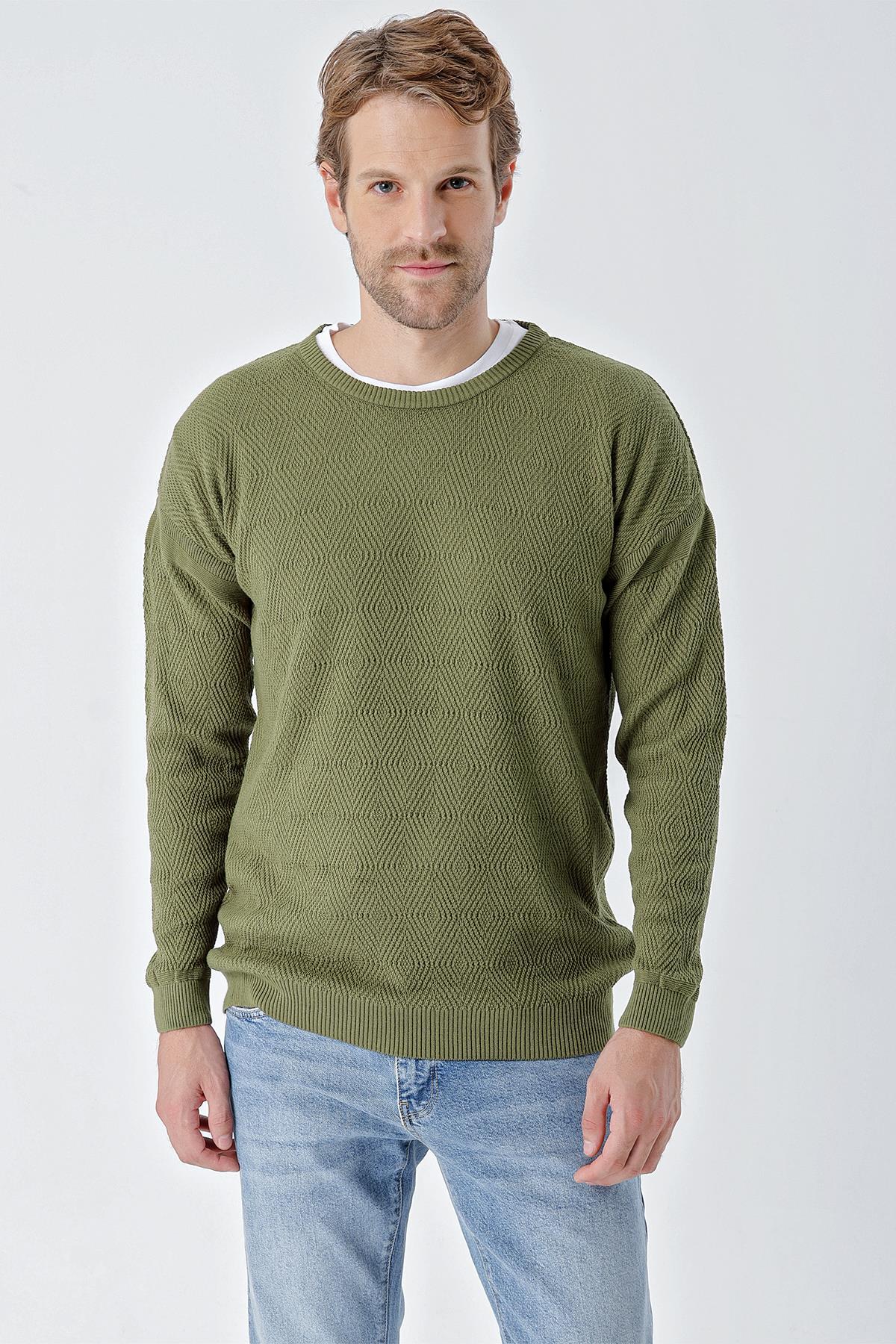 Chuba Erkek Bisiklet Yaka Standart Fit Normal Kalıp Spor Triko Kazak Haki 24W215