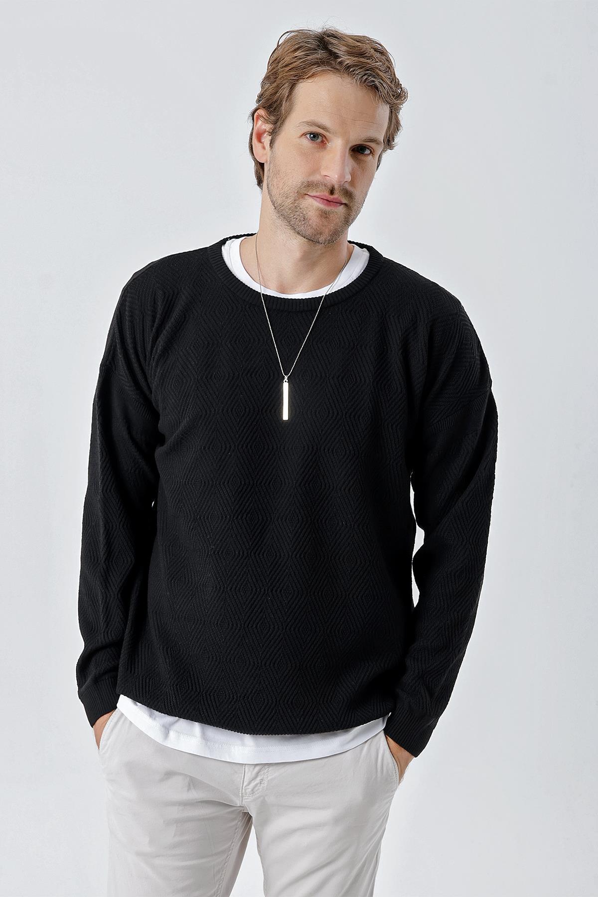 Chuba Erkek Bisiklet Yaka Standart Fit Normal Kalıp Spor Triko Kazak Siyah 24W215