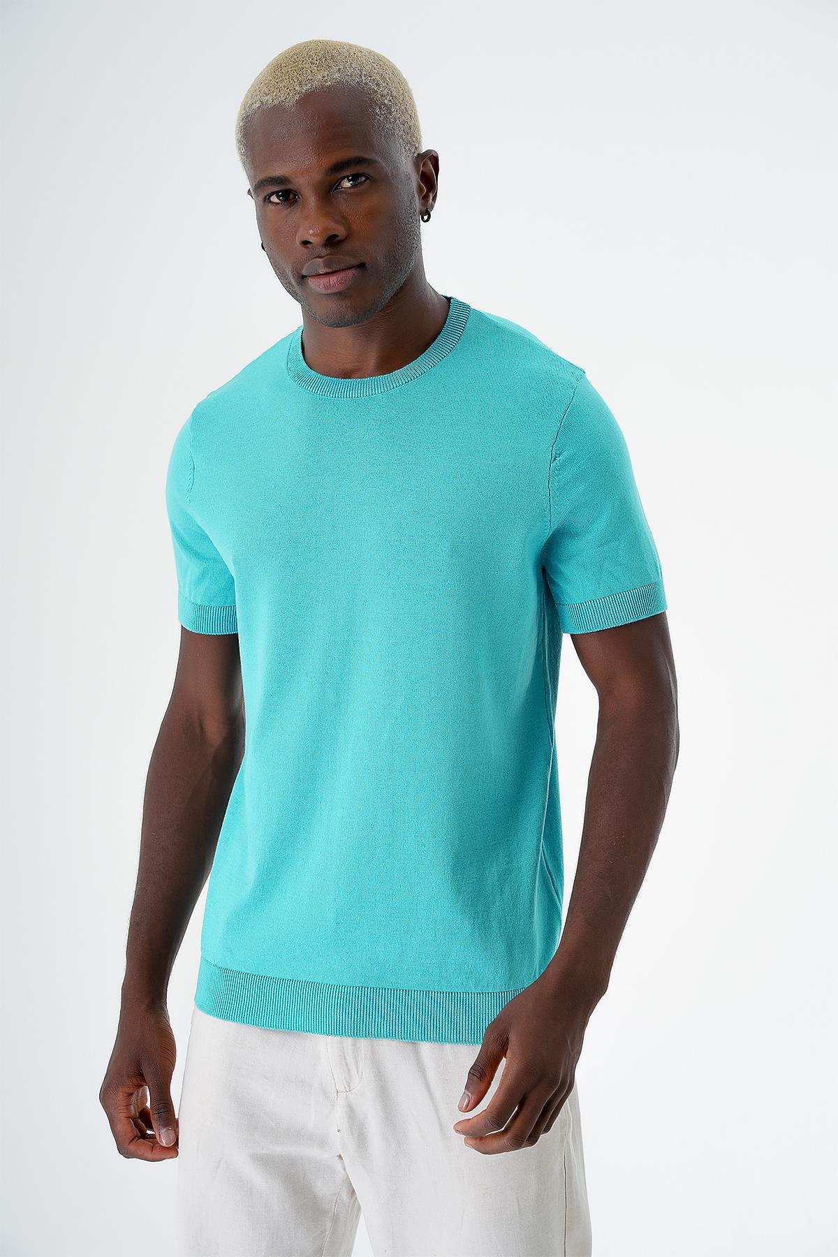 Chuba Erkek Bisiklet Yaka Standart Fit Pamuklu Kısa Kollu Triko Kazak Turkuaz 24S261
