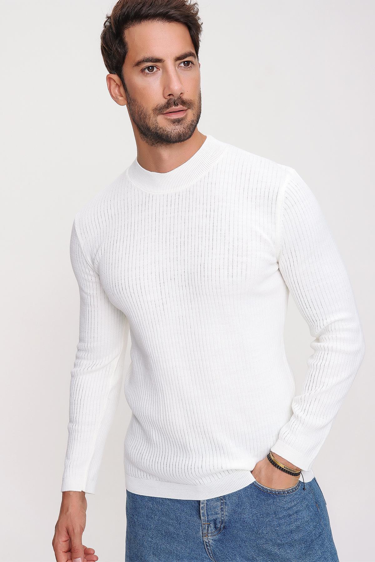 Chuba Erkek Ekru Kubi Bisiklet Yaka Fitilli Uzun Kol İnce Triko Kazak 22W301