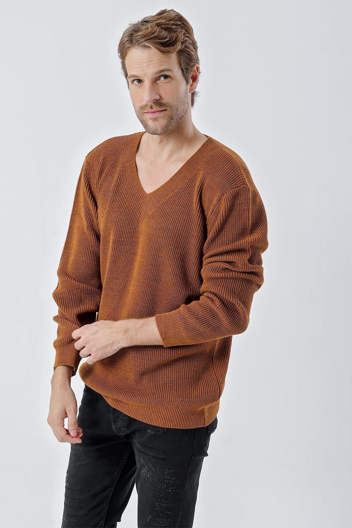 Chuba Erkek Genova V Yaka Standart Fit Triko Kazak Tarçın 24W209