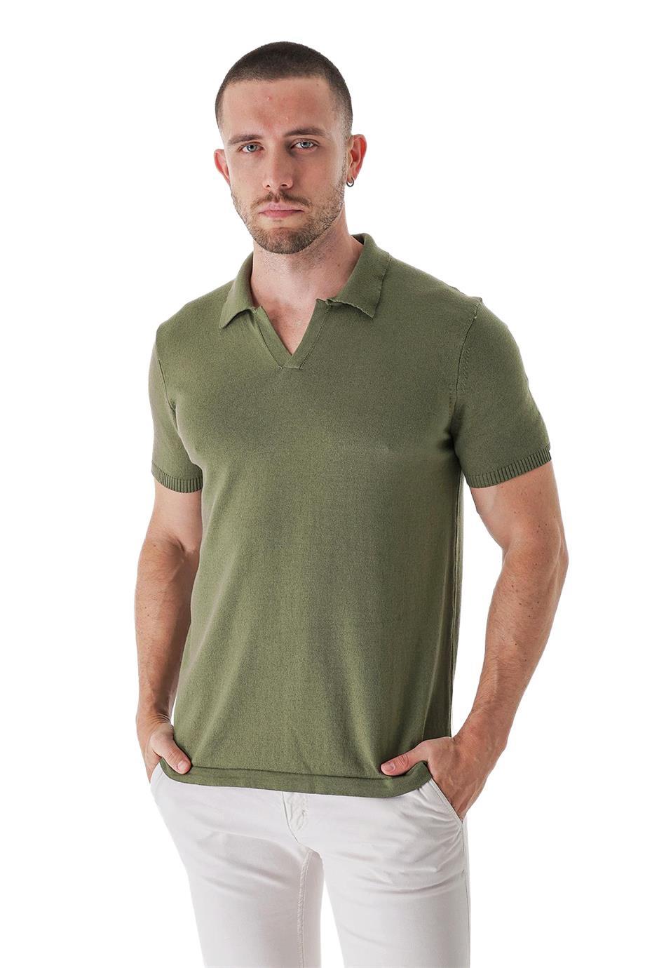 Chuba Erkek Polo Yaka Kontrast Çizgi Detaylı Pamuklu İnce Triko T-Shirt Haki  22SM209