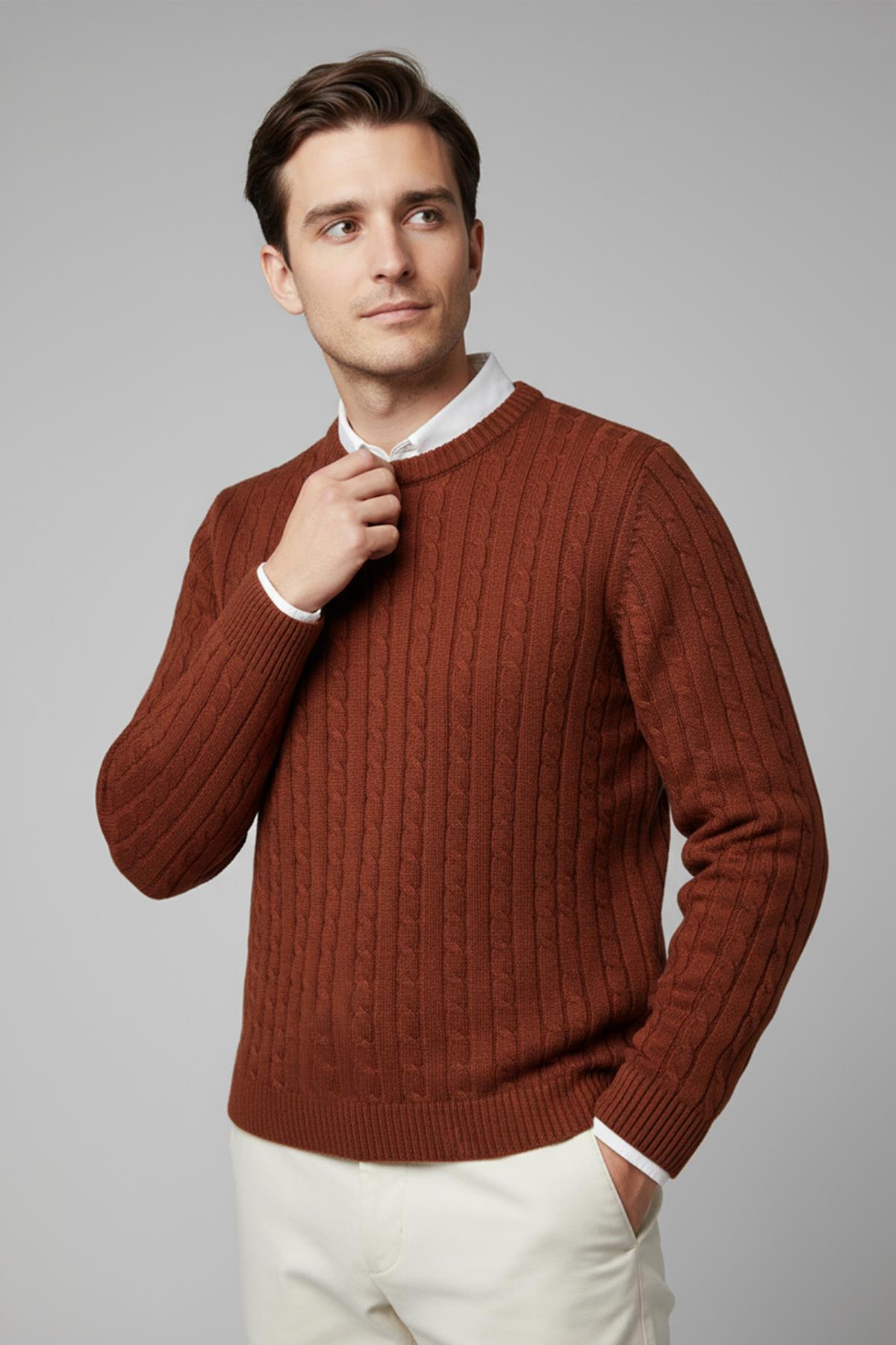 Chuba Erkek Saç Örgü Bisiklet Yaka Kalın Triko Kazak Tarçın 26W2014