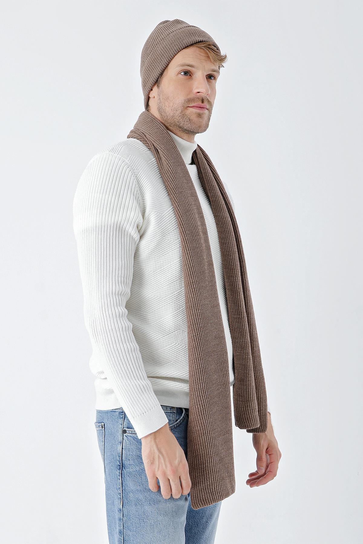 Chuba Erkek Selanik Örgü Triko Atkı Bere Takımı Kahve 22W850