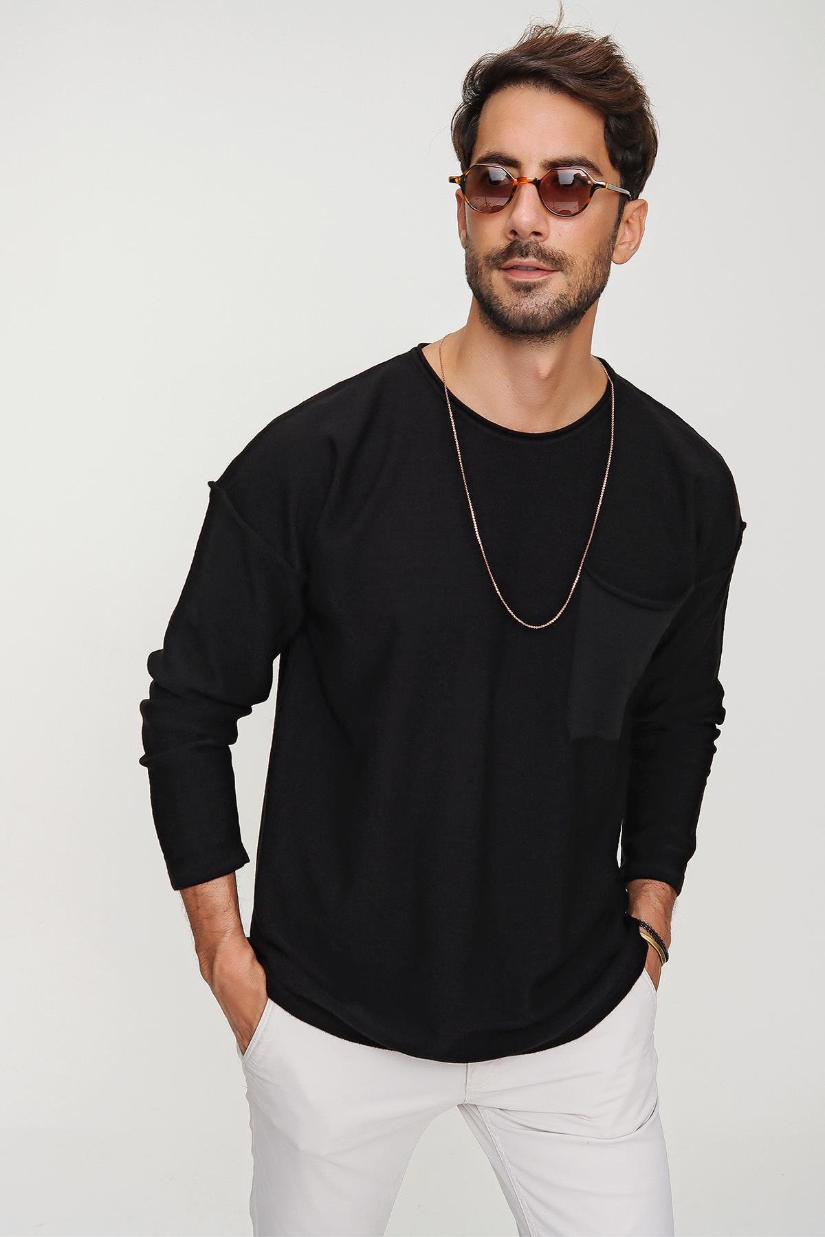Chuba Erkek Siyah Hero Bisiklet Yaka Pis Dikiş Cepli Uzun Kol İnce Triko Kazak 22W202