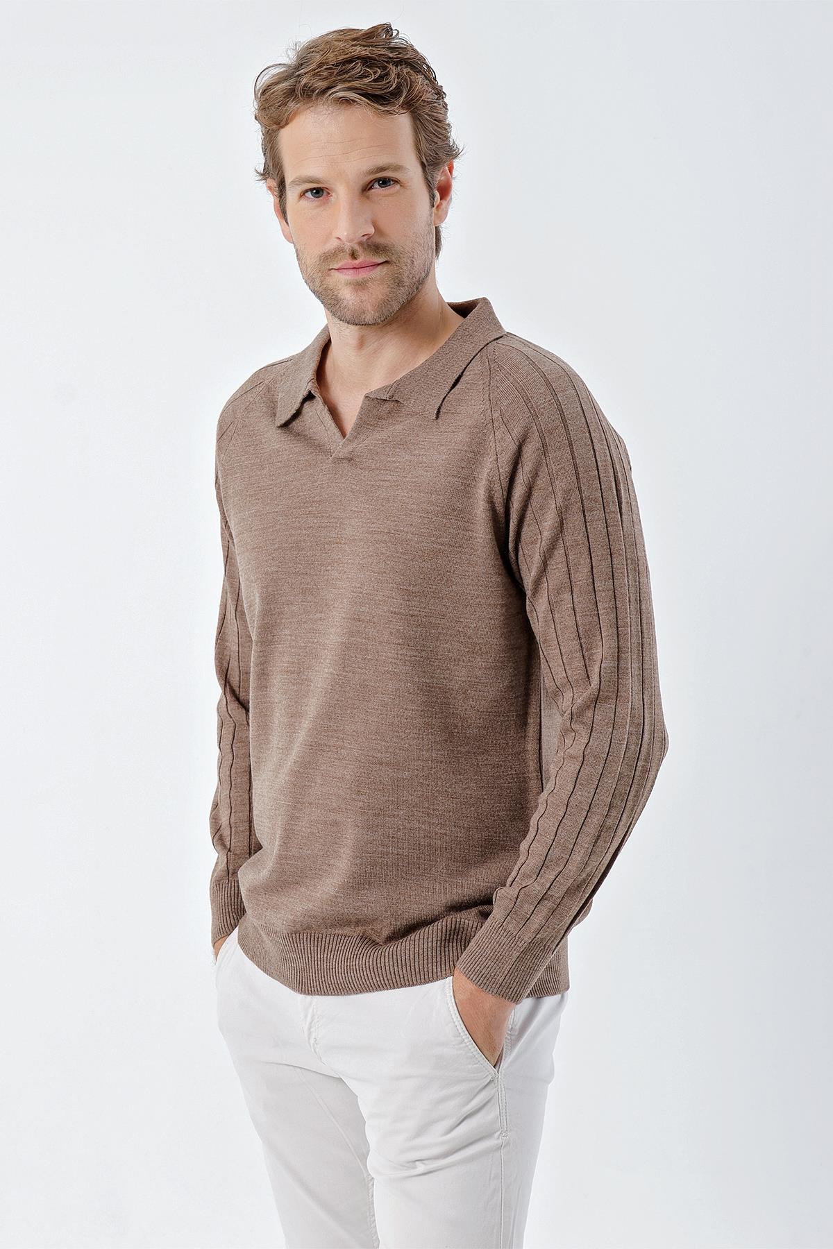 Chuba Erkek Standart Fit Reglan Kol Polo Yaka Triko Kazak Kahve 24W210