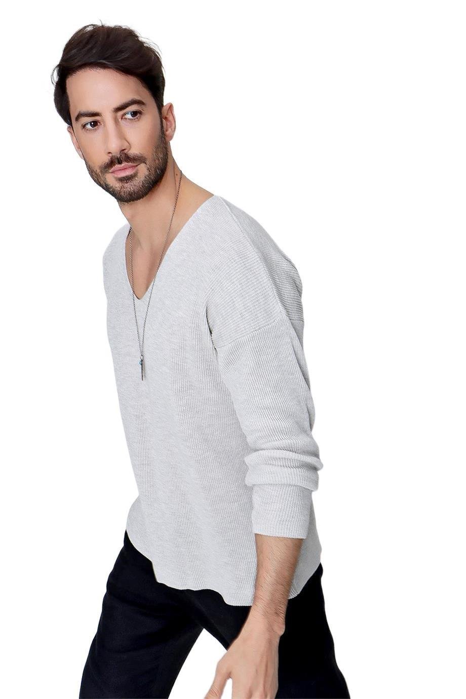 Chuba Erkek V Yaka Pamuklu Salaş Triko Kazak Gri  22SM212