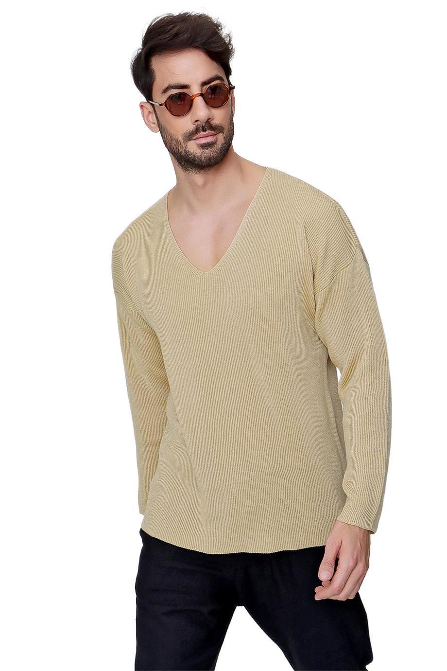 • V Yaka, Selanik Örgü, Pamuklu Mevsimlik Triko Kazak.