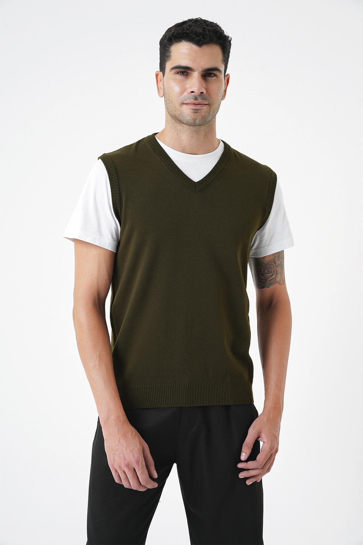 Chuba Erkek V Yaka Regular Fit Triko Süveter Haki 25W2001