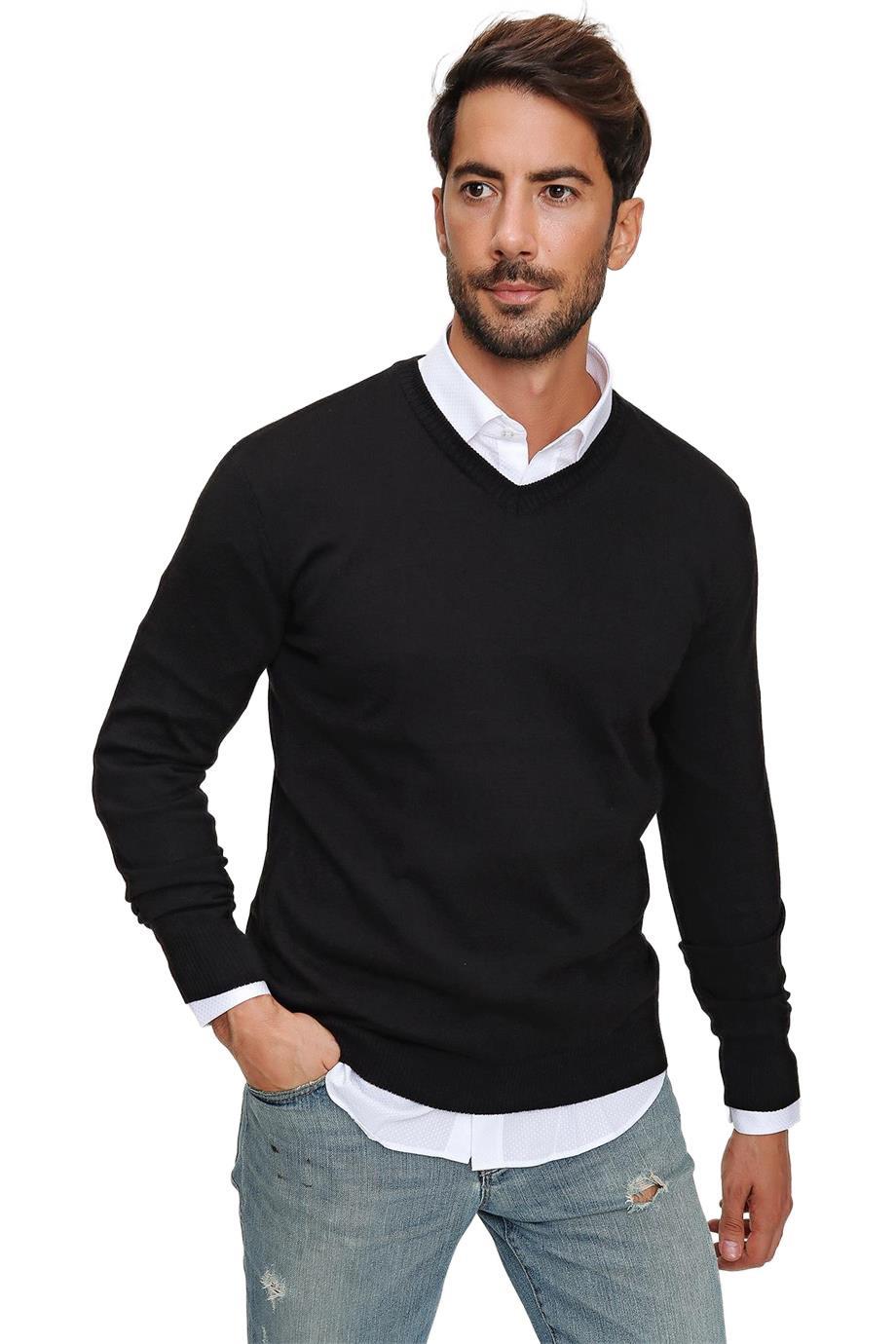 Chuba Erkek Siyah V Yaka Triko Kazak 20W151