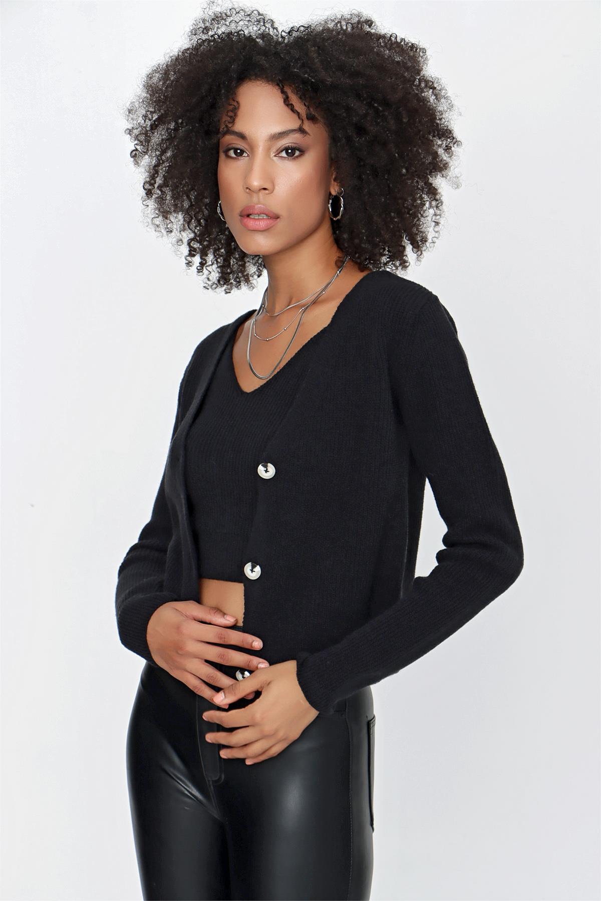 CHUBA Kadın Askılı Atlet - Hırka Melanj İkili Triko Takım Siyah 23W317