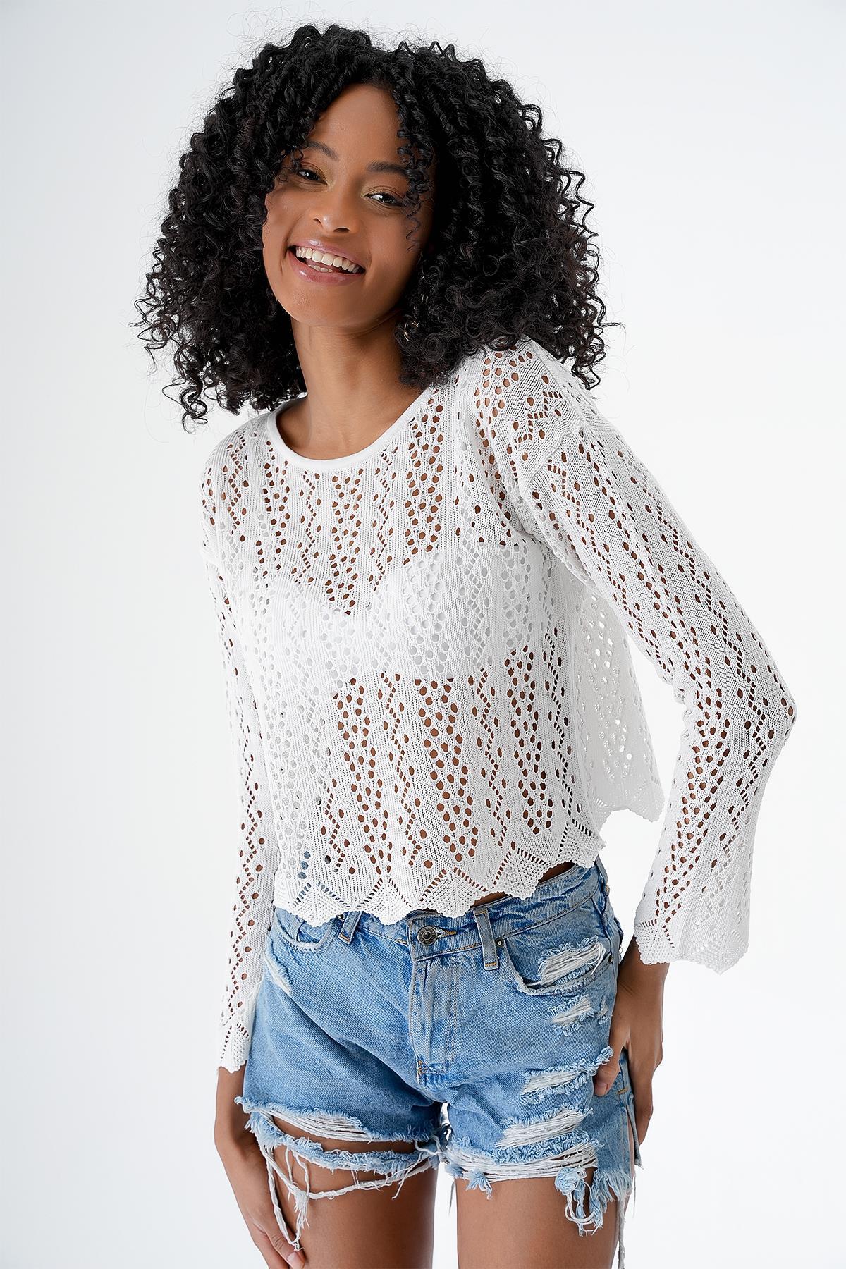 Chuba Kadın Bisiklet Yaka Ajurlu Triko Kazak Beyaz 24S160
