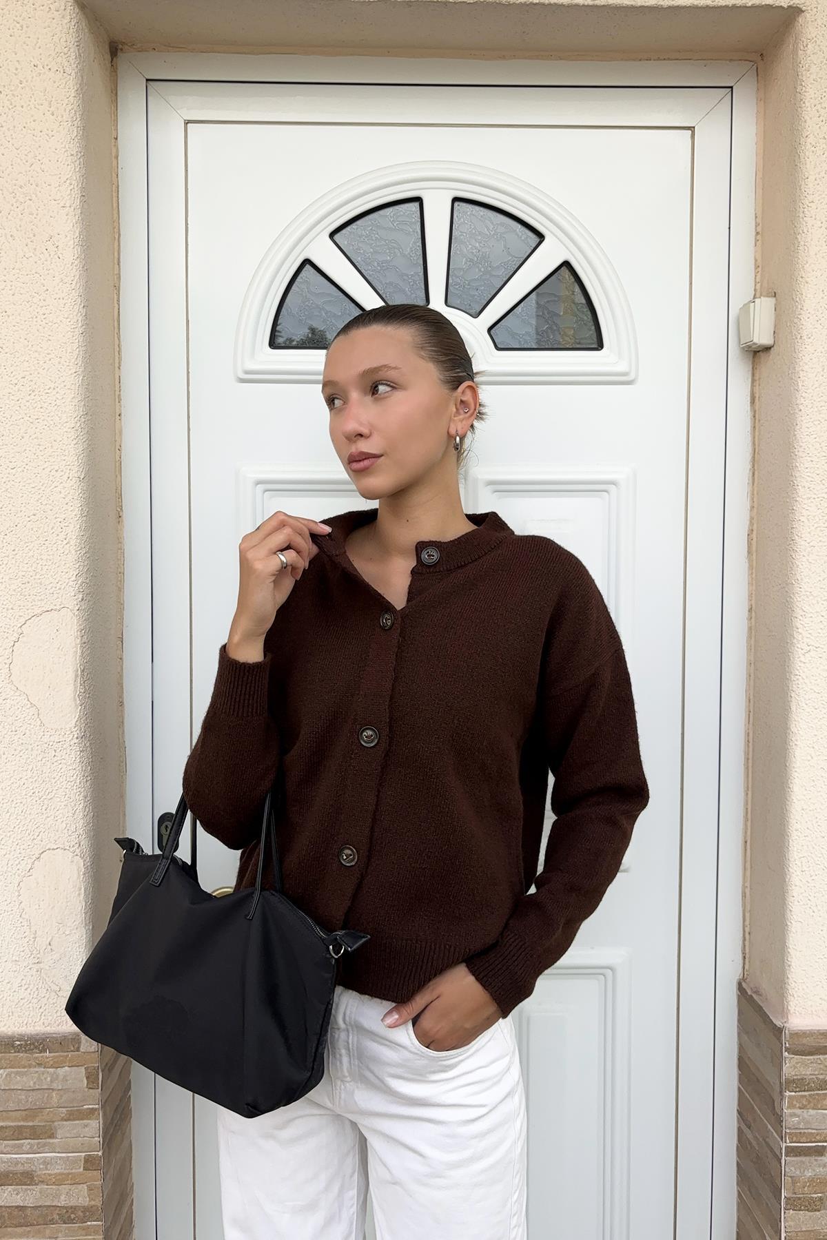 Chuba Kadın Bisiklet Yaka Düğmeli Yumuşak Dokulu Triko Hırka Kahve 26W3033