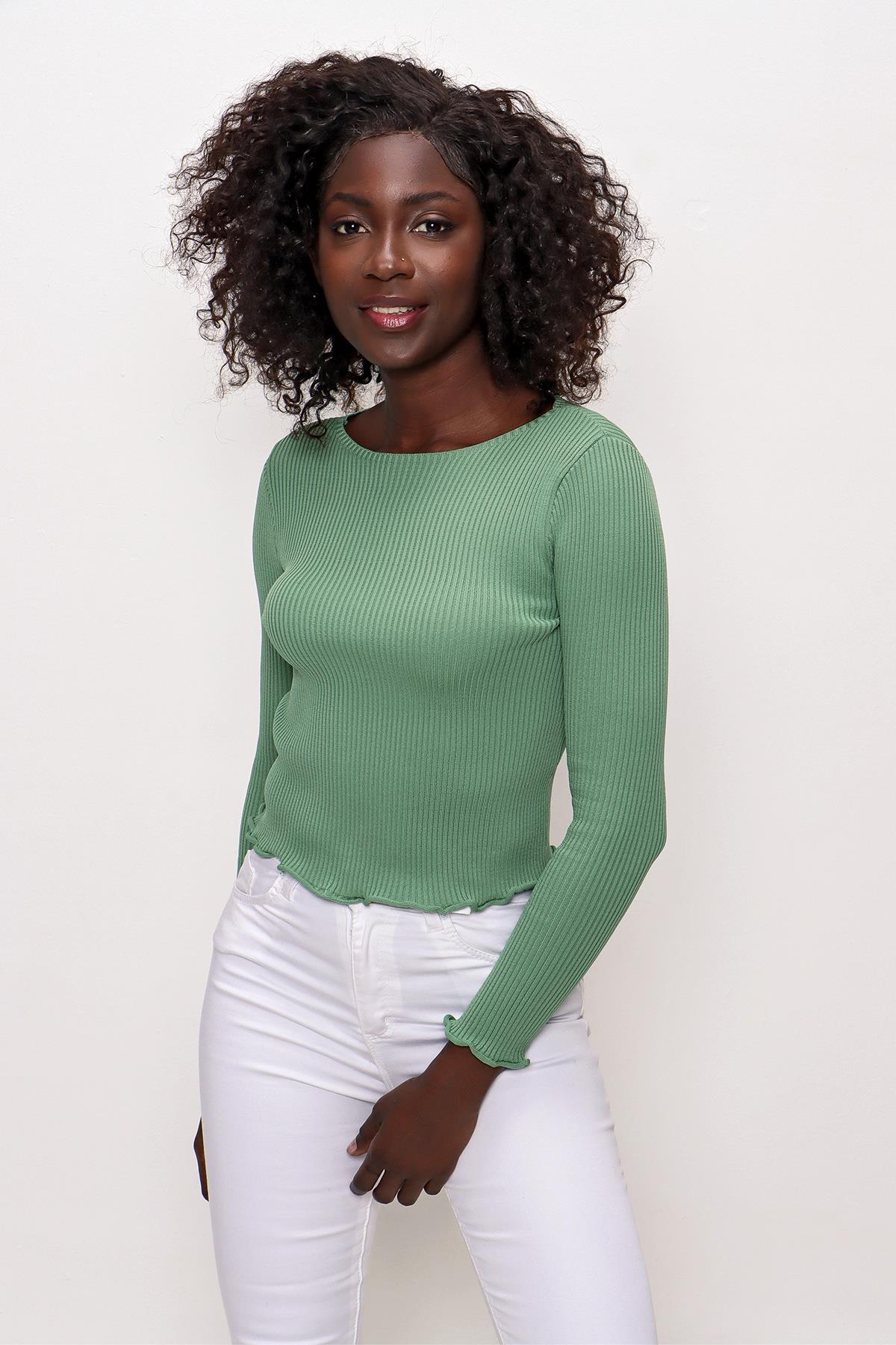 Chuba Kadın Bisiklet Yaka Fırfırlı İnce Triko Kazak Yeşil 22SW305