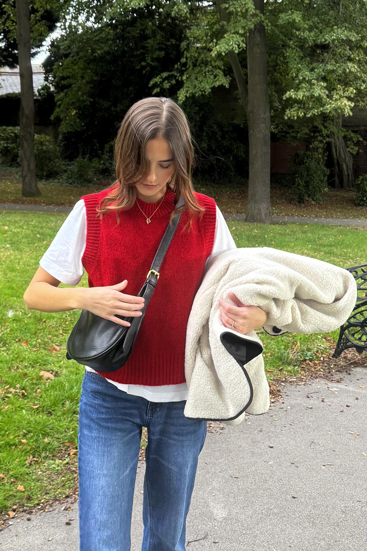 • Dik bisiklet yakalı, ekstra yumuşak dokulu, orta kalınlıkta, basic Chuba triko süveter kolsuz kazak.