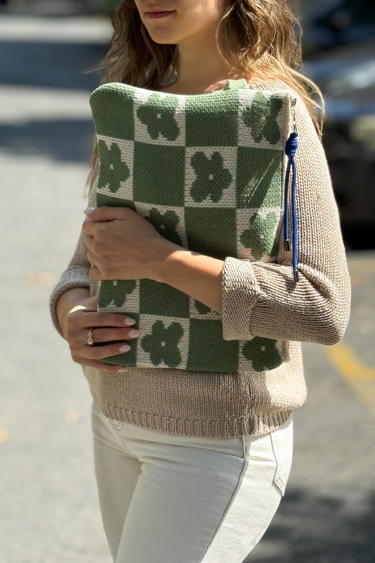 Chuba Çiçek Desenli Aksesuarlı Triko Laptop & Macbook & Tablet Kılıfı 13”-14” Inç Uyumlu Yeşil-Vanilya CHAX819