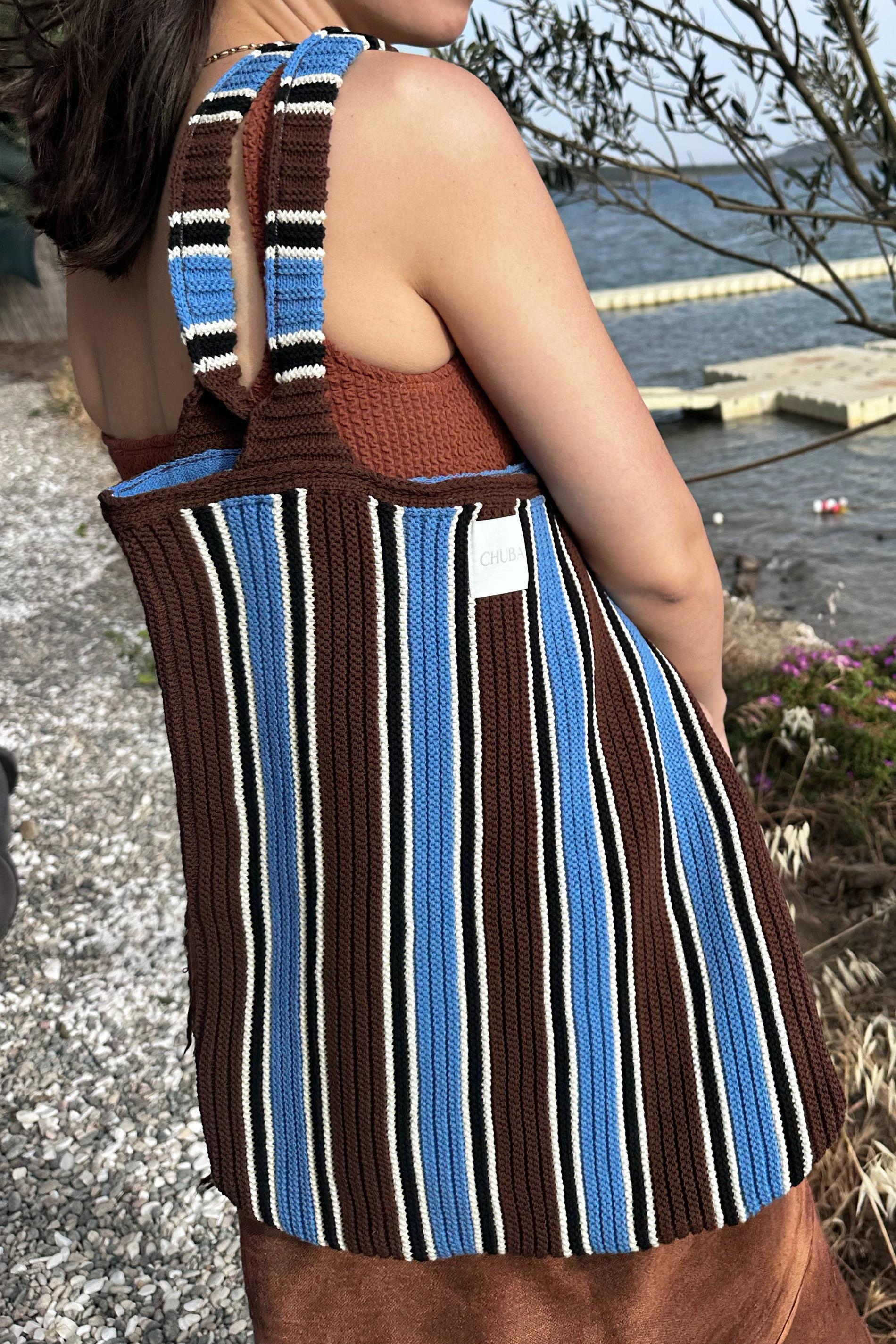 Chuba Kadın Çizgili Çok Renkli İçi Astarlı Triko El&Omuz Plaj Çantası Kahve-Mavi CHAX816
