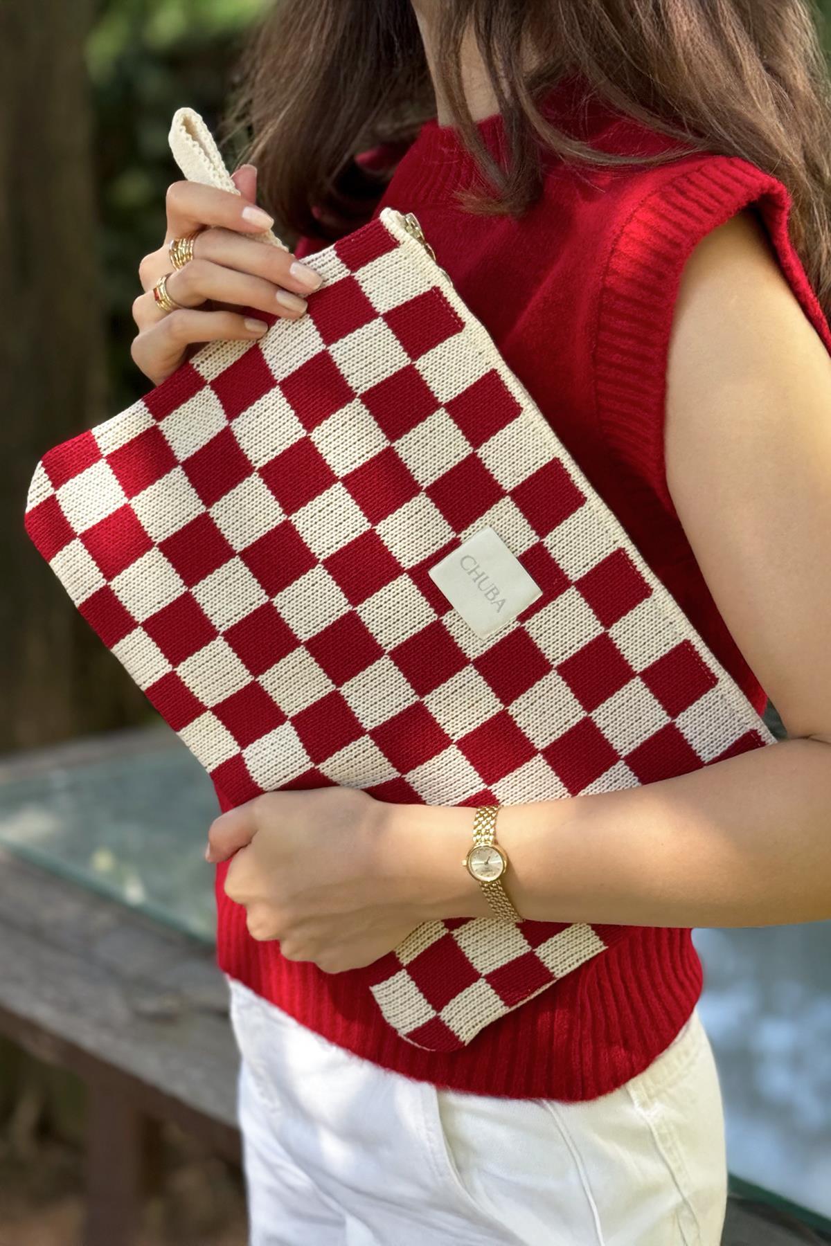 • Dama desenli, renkli fermuarlı, sap detaylı, Chuba Logo Etiketli Chuba Triko Laptop ve Tablet kılıfı.