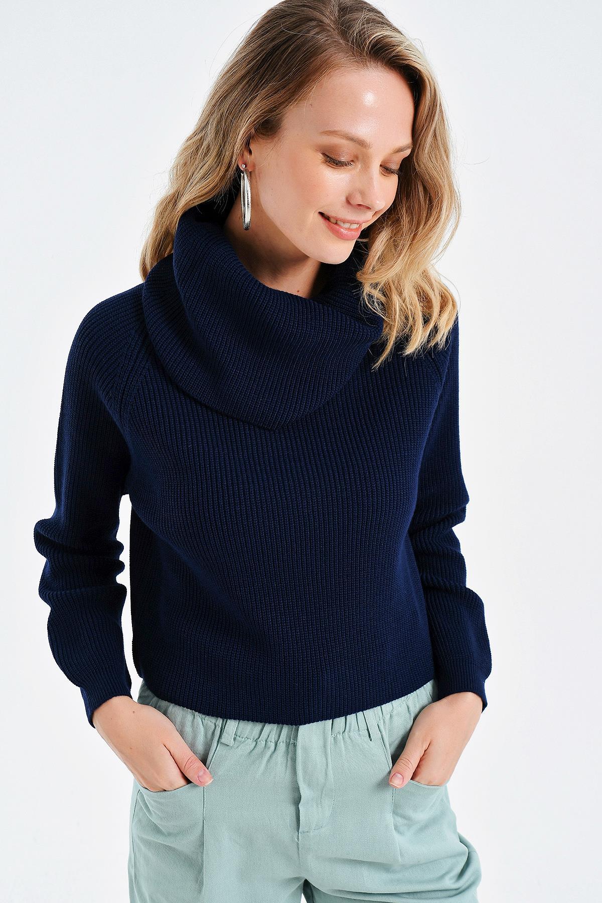 Chuba Kadın Degaje Balıkçı Yaka Kısa Selanik Triko Kazak 20W106