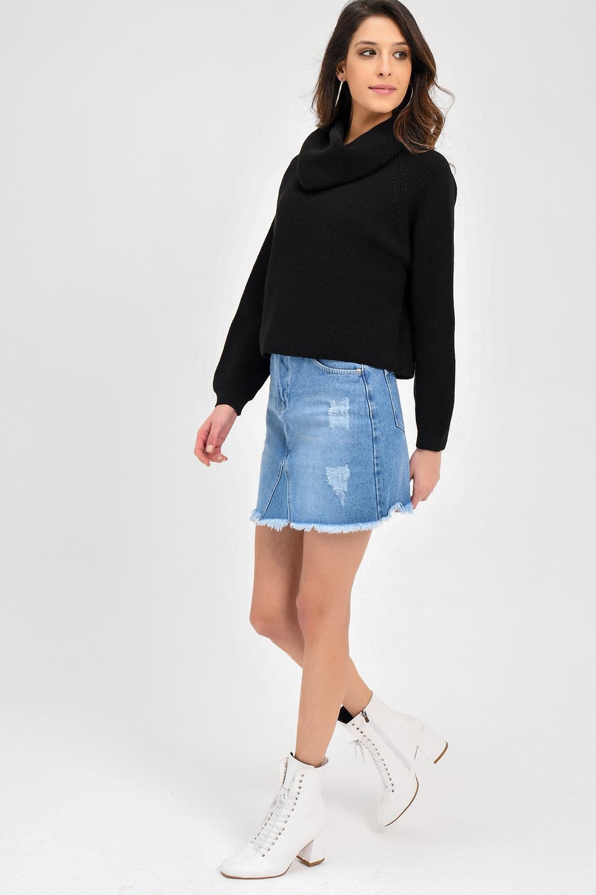 Chuba Kadın Degaje Balıkçı Yaka Kısa Selanik Triko Kazak 20W106