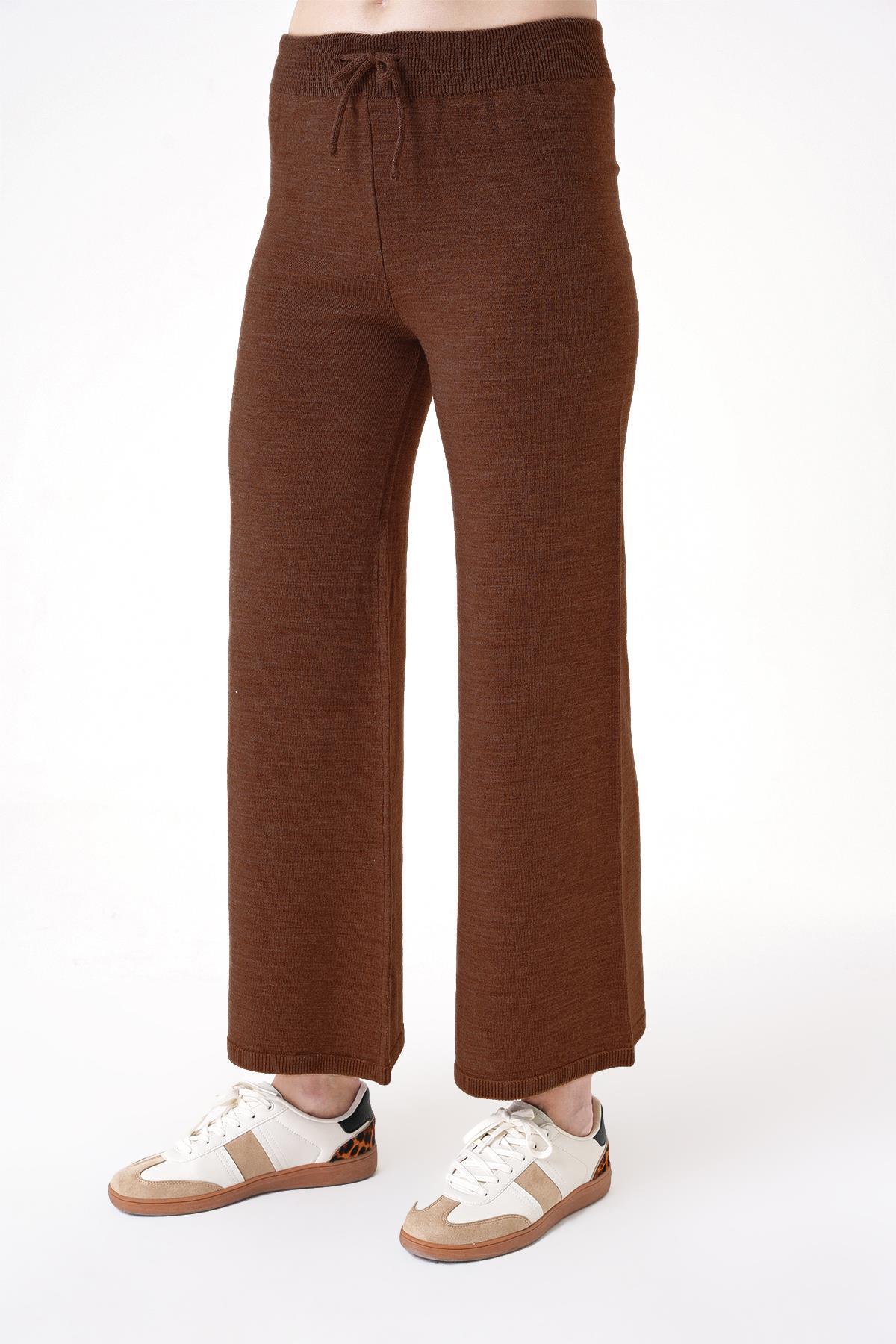 Chuba Kadın Geniş Paça Normal Kalıp Triko Pantolon Kahverengi 24W120
