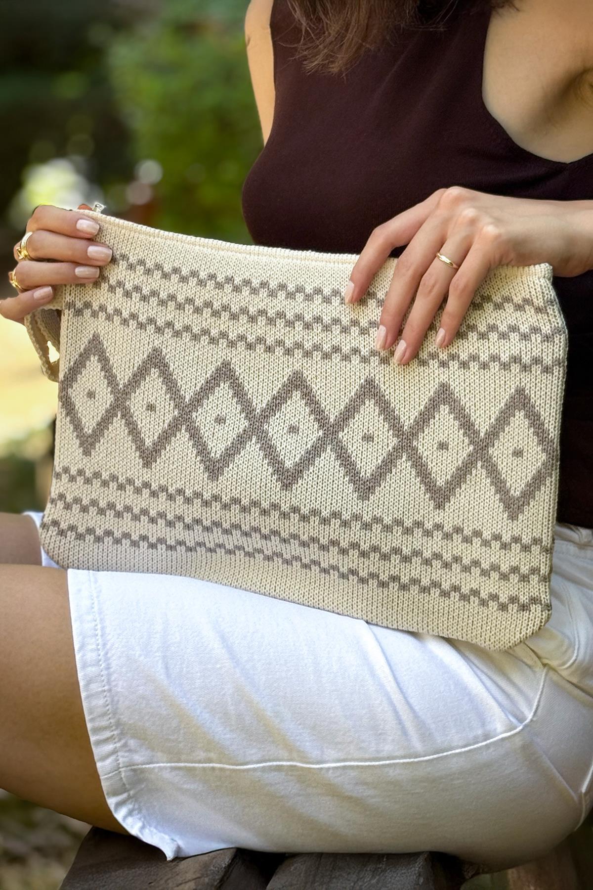 • Etnik desenli, fermuarlı, sap detaylı, Chuba triko Laptop ve Tablet kılıfı.