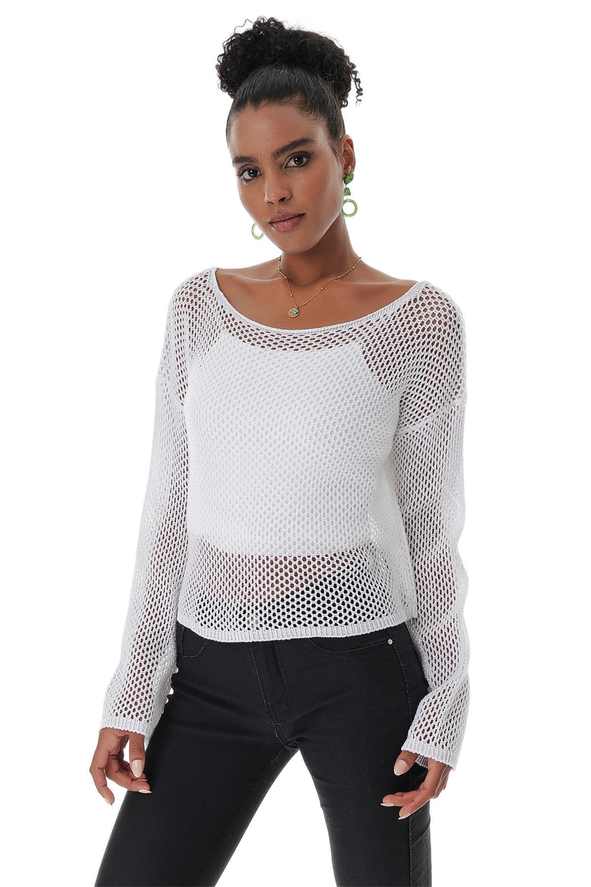 Chuba Kadın File Örgü Pamuklu Bolero Triko Kazak Beyaz 23S1006