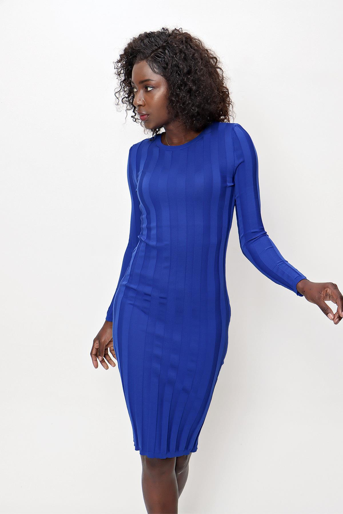 Chuba Kadın Fitilli Triko Elbise Saks 22SW313