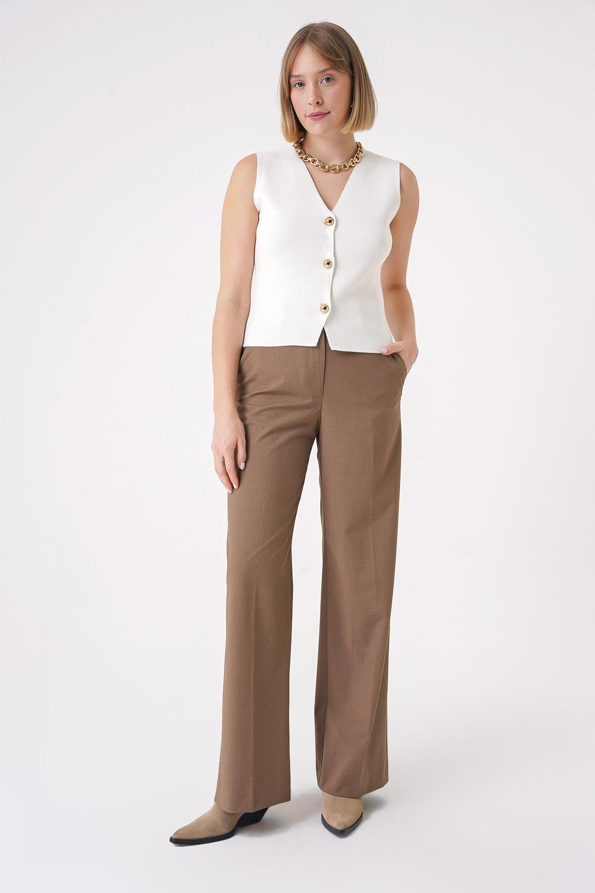 Chuba Kadın Gold Düğmeli Dokulu Regular Fit Triko Yelek Ekru 25W3001