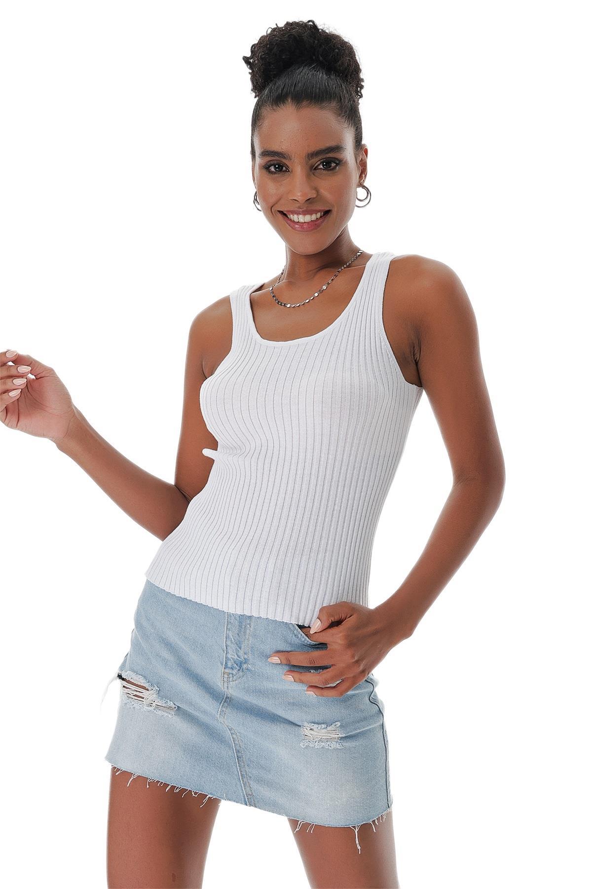 Chuba Kadın Havuz Yaka Fitilli İnce Pamuklu Triko Atlet Beyaz 23S1015