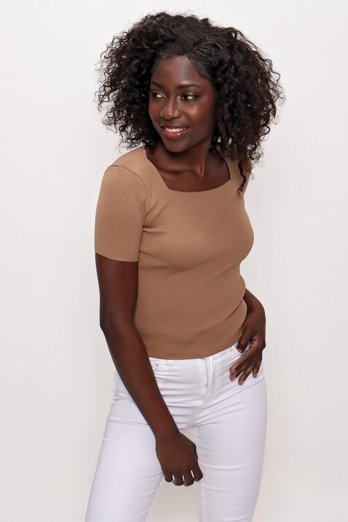 • Kare Yaka Kısa Kollu Triko Kazak.