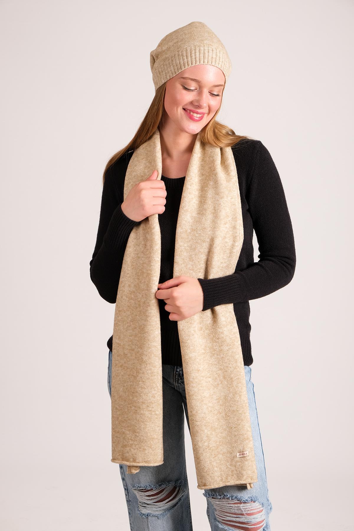 Chuba Kadın Melanj Yumuşak Tuşe Atkı Bere Takımı Bej 23W505