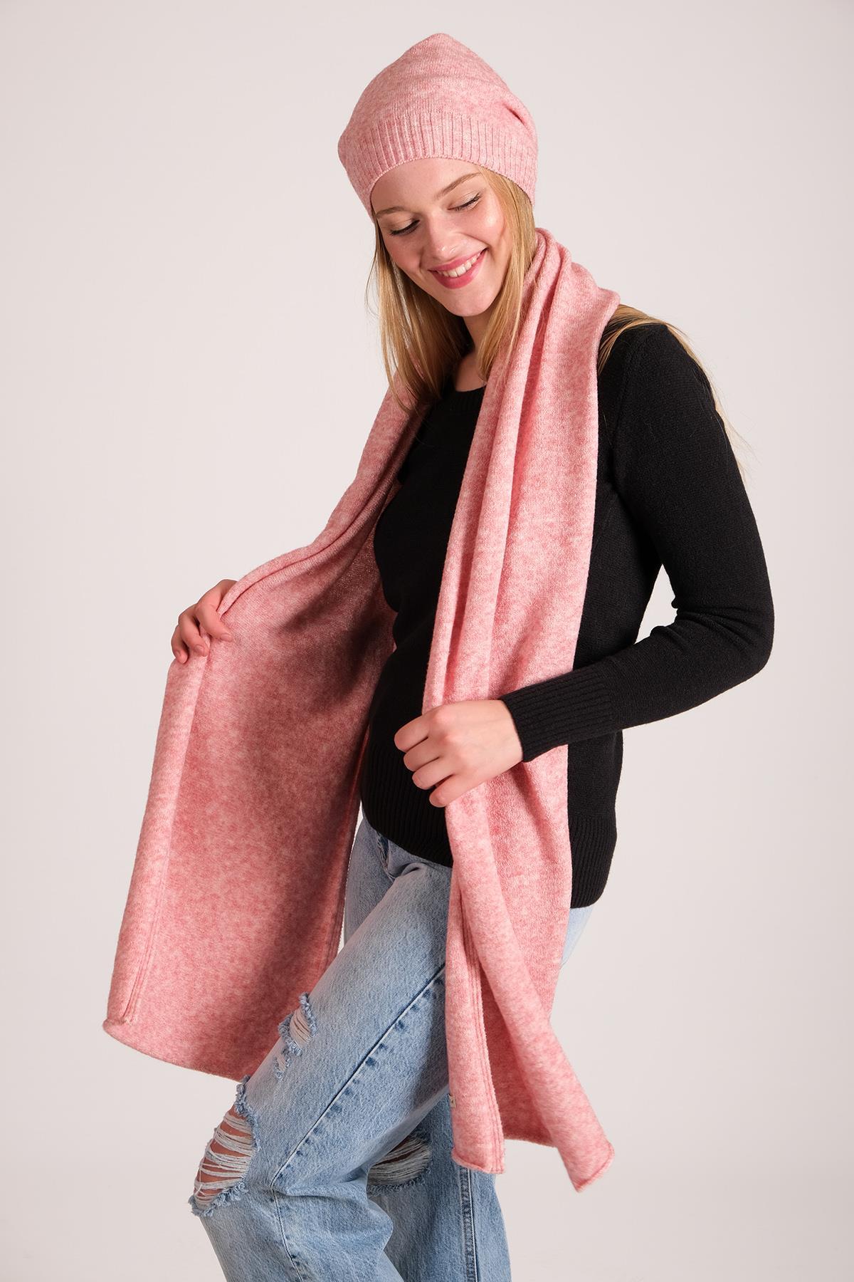 Chuba Kadın Melanj Yumuşak Tuşe Atkı Bere Takımı Pembe 23W505