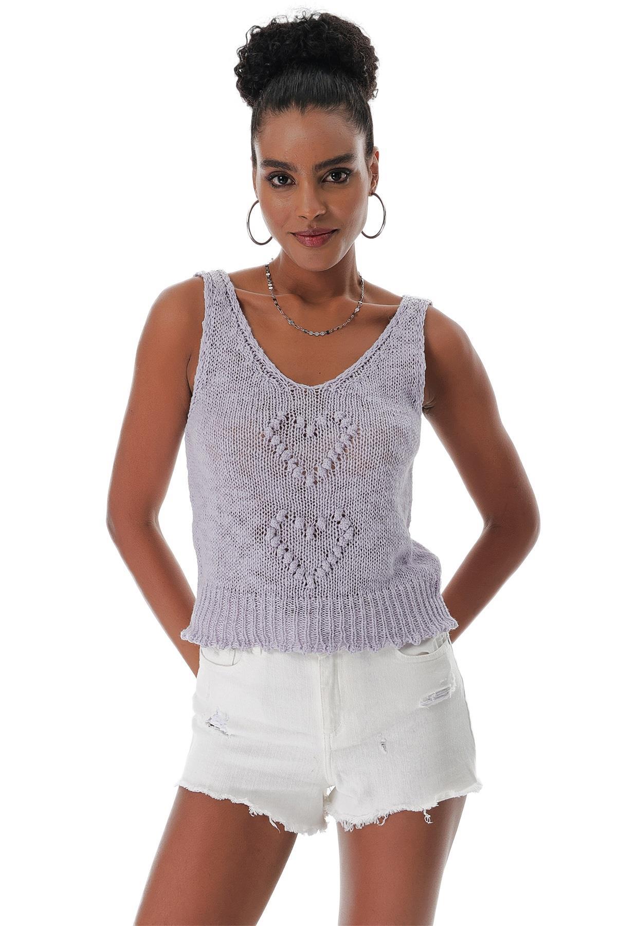 Chuba Kadın Pamuklu V Yaka Triko Atlet Lila 23S1005
