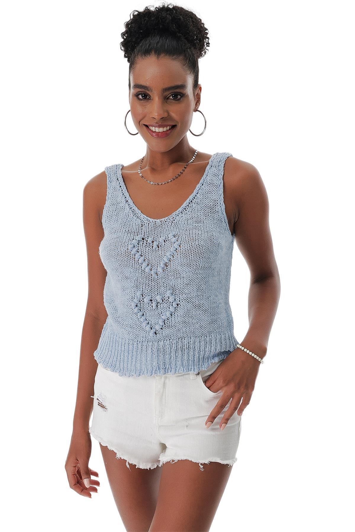 Chuba Kadın Pamuklu V Yaka Triko Atlet Mavi 23S1005