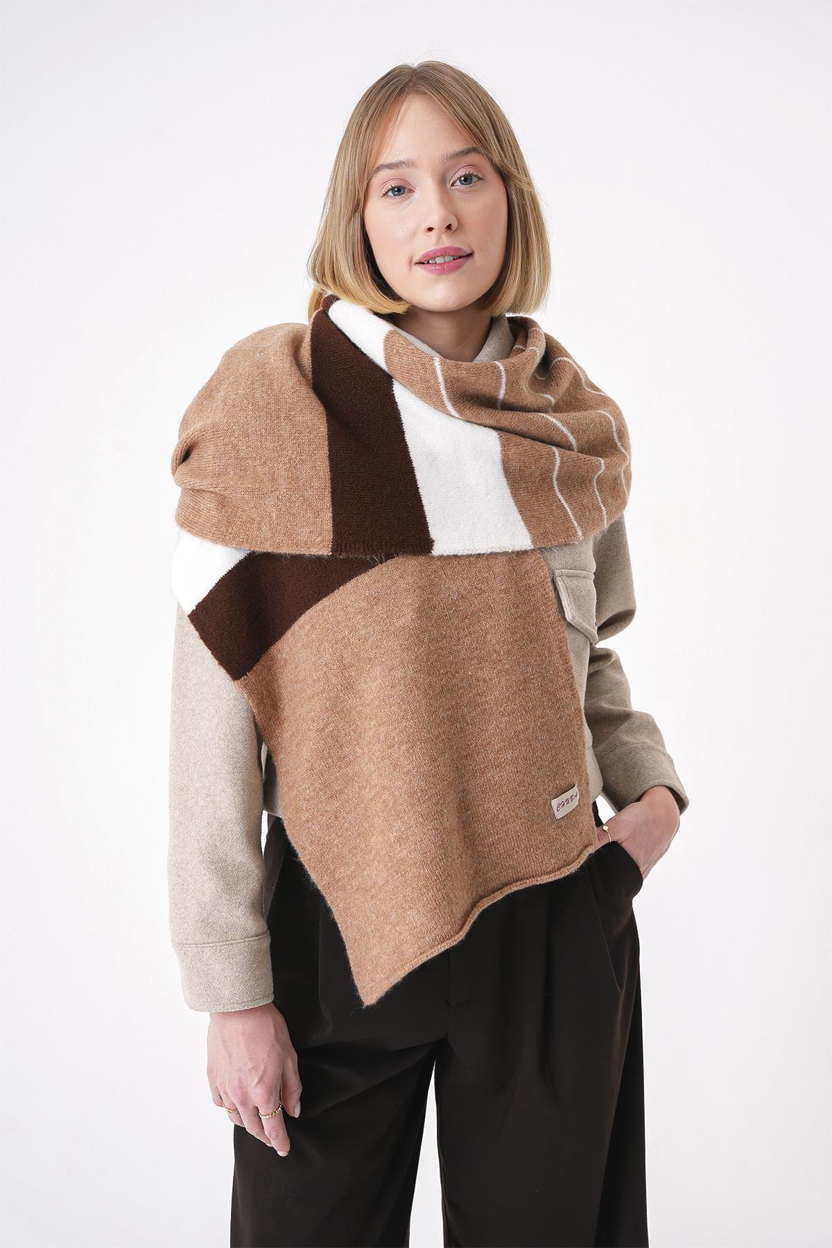 • Yumuşak dokulu, çizgi bloklu Chuba triko atkı şal.