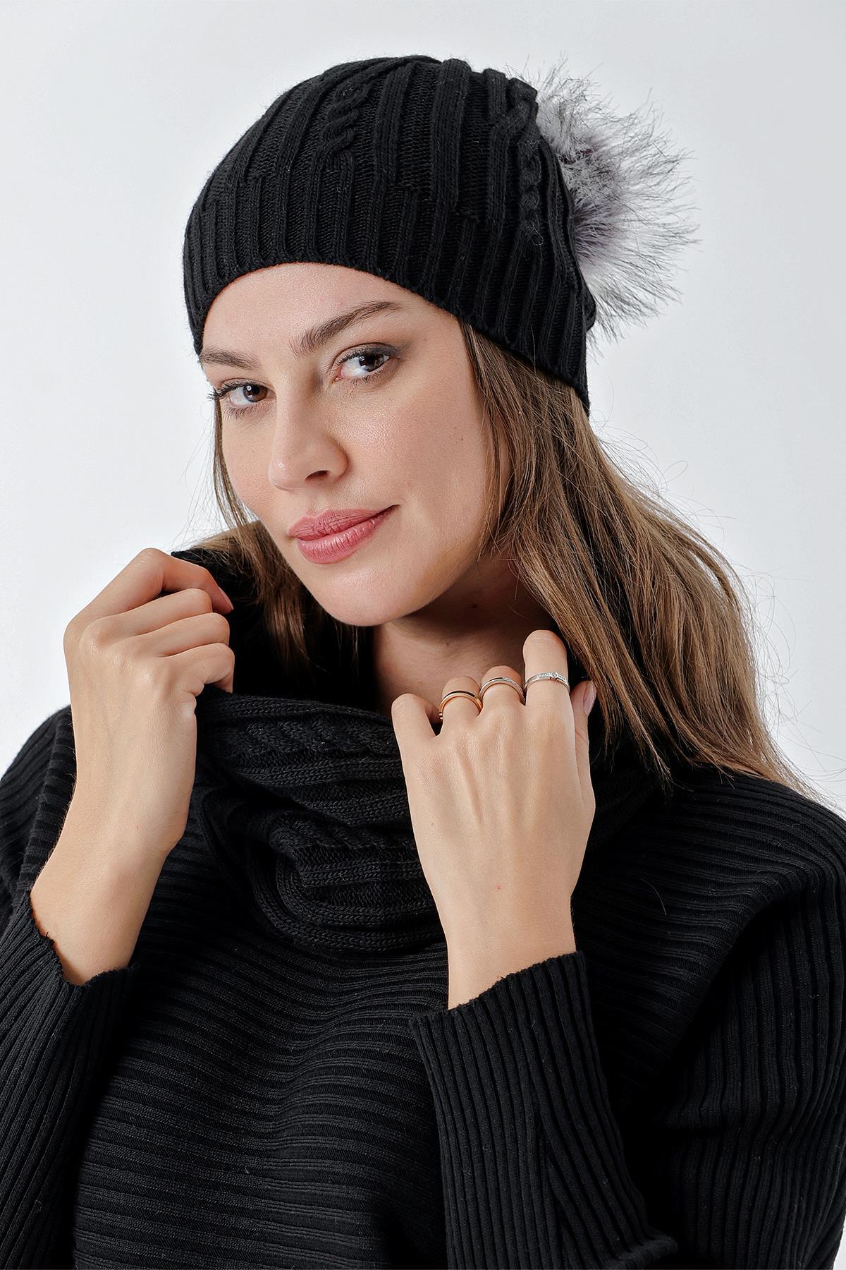 Chuba Kadın Saç Örgü Bere ve Boyunluk Takımı Siyah 24W131